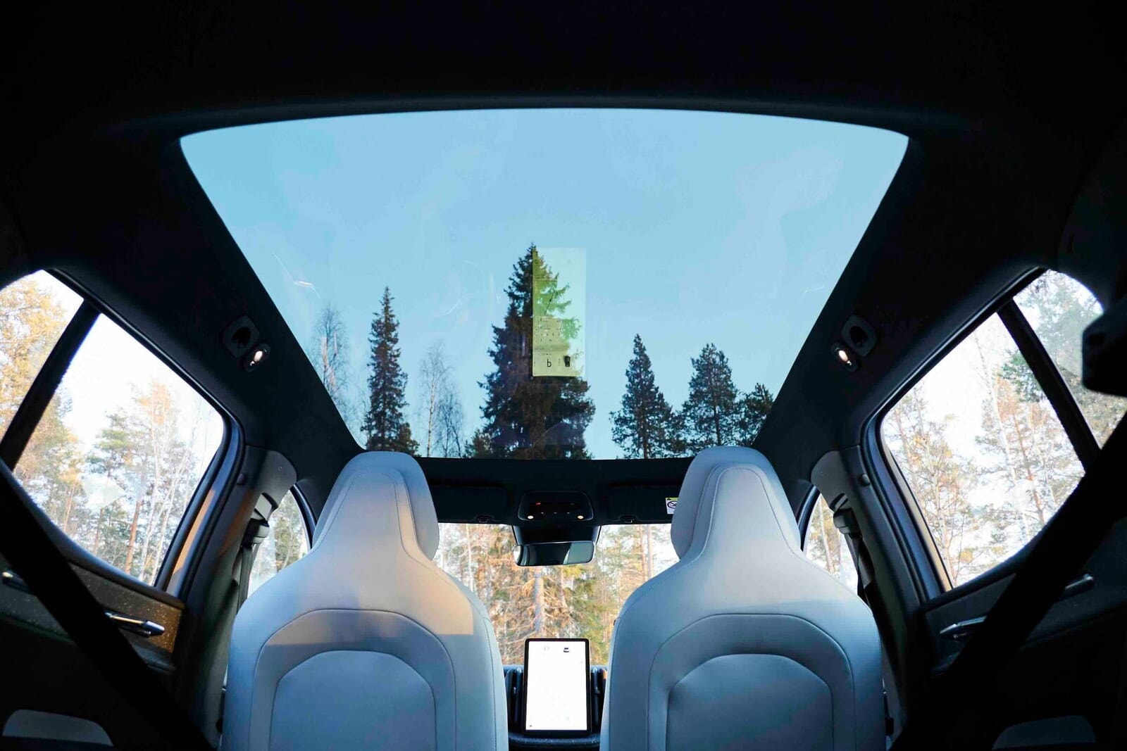 とてもラッキーなことに、今回のツアーでは初日から天候に恵まれた。なかなかこの時期のスウェーデンでは珍しい。しかもトナカイが出現し、オーロラまでお目見えできたというこの上ない運の良さ。車にいながらも外の素晴らしい景色と一体になれるのは、後部座席までの開放的なパノラマ・ガラス・ルーフの賜物だ。またガラス・ルーフには熱線対策が施されているので、天候がいい日でも直射日光を受けて「アチッ、アチッ」と身体を陰に移動する必要がなく十二分に景観を楽しめる。