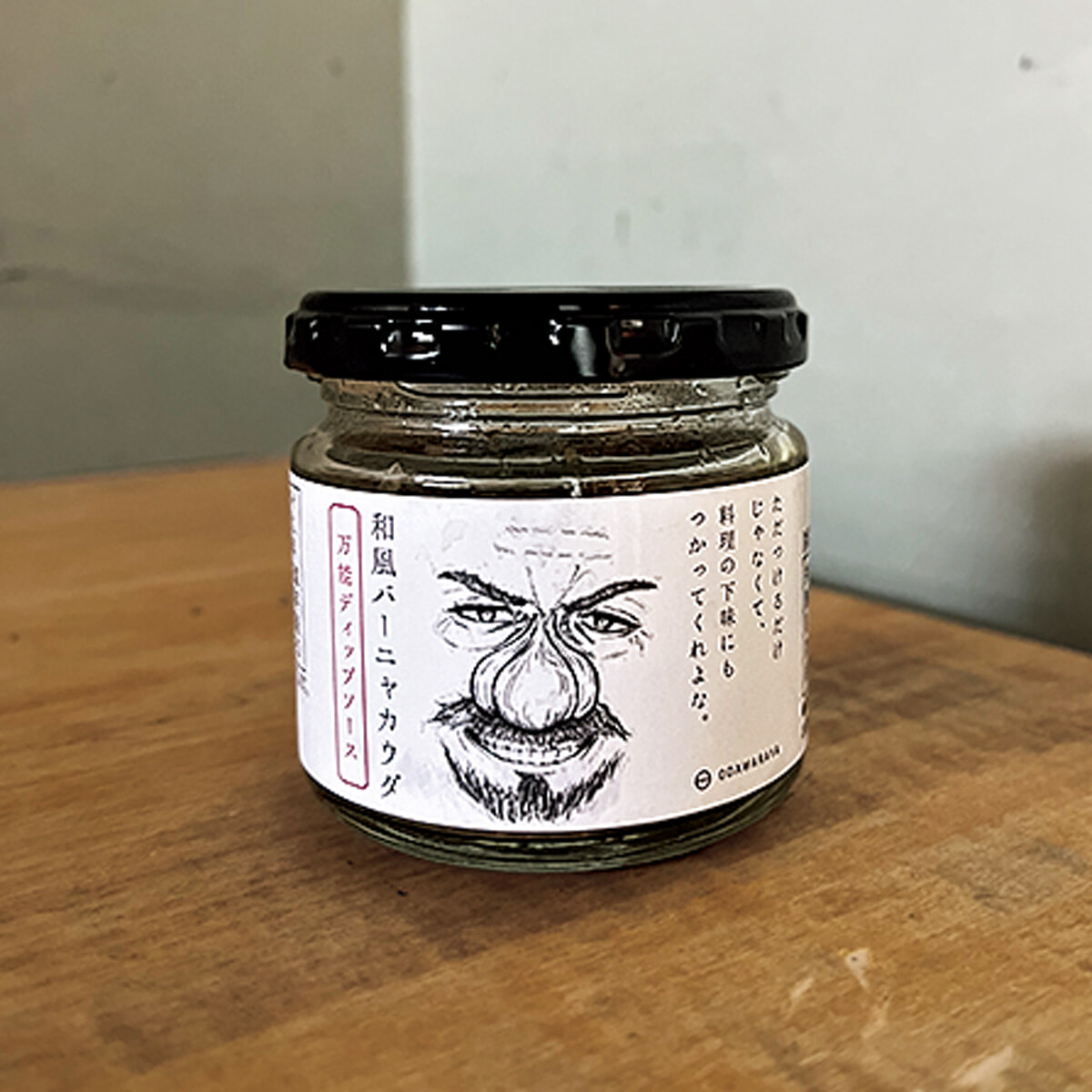 ニンニク鼻のおじさんのイラストが強烈なこちらは、福島県郡山市の老舗漬物店が手がけるオリジナル調味料のひとつ。アンチョビの代わりに塩麹とシラスを使って和風に仕上げたもので、ニンニクの風味とシラスの旨味、塩麹のまろやかな塩味が絶妙なバランス。ニンニクが利いていてバゲットと好相性だから、とろけるチーズと合わせたり、水菜やキュウリを挟んでサンドウィッチにしたり。和風だからご飯にも合うかもと、白いご飯にのせて海苔で巻いて食べたら、これまた良き良き。あれこれアレンジを考えるのが楽しい一品で、食卓を豊かにしてくれる。