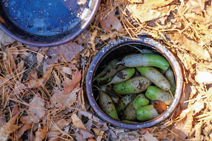 現時点で私にとって最も印象的な韓国の「白」は、撮影でお世話になったパクさんのお宅の庭先に埋められた丸々とした大根、そして、私にとって忘れられない映画の一本『バーニング 劇場版』の中で観た光の色、そして、赤々と燃え盛る炎と対照的に立ち上っていく煙だ。
