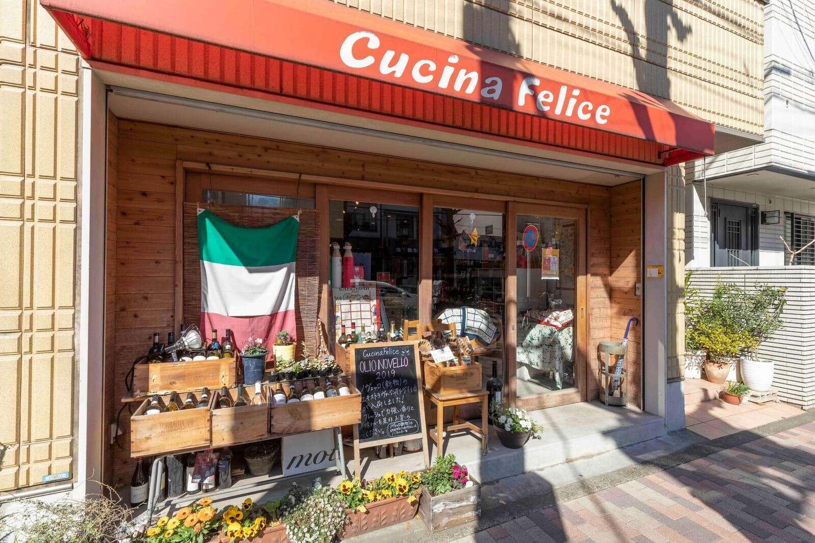 世田谷線松陰神社前駅から徒歩4分、商店街を抜けた世田谷通り沿いに「クチーナフェリーチェ」が見えてくる。尾崎智泰さん、喜子さん夫妻の営むイタリアワインとデリカテッセン、イタリア食材の店だ。