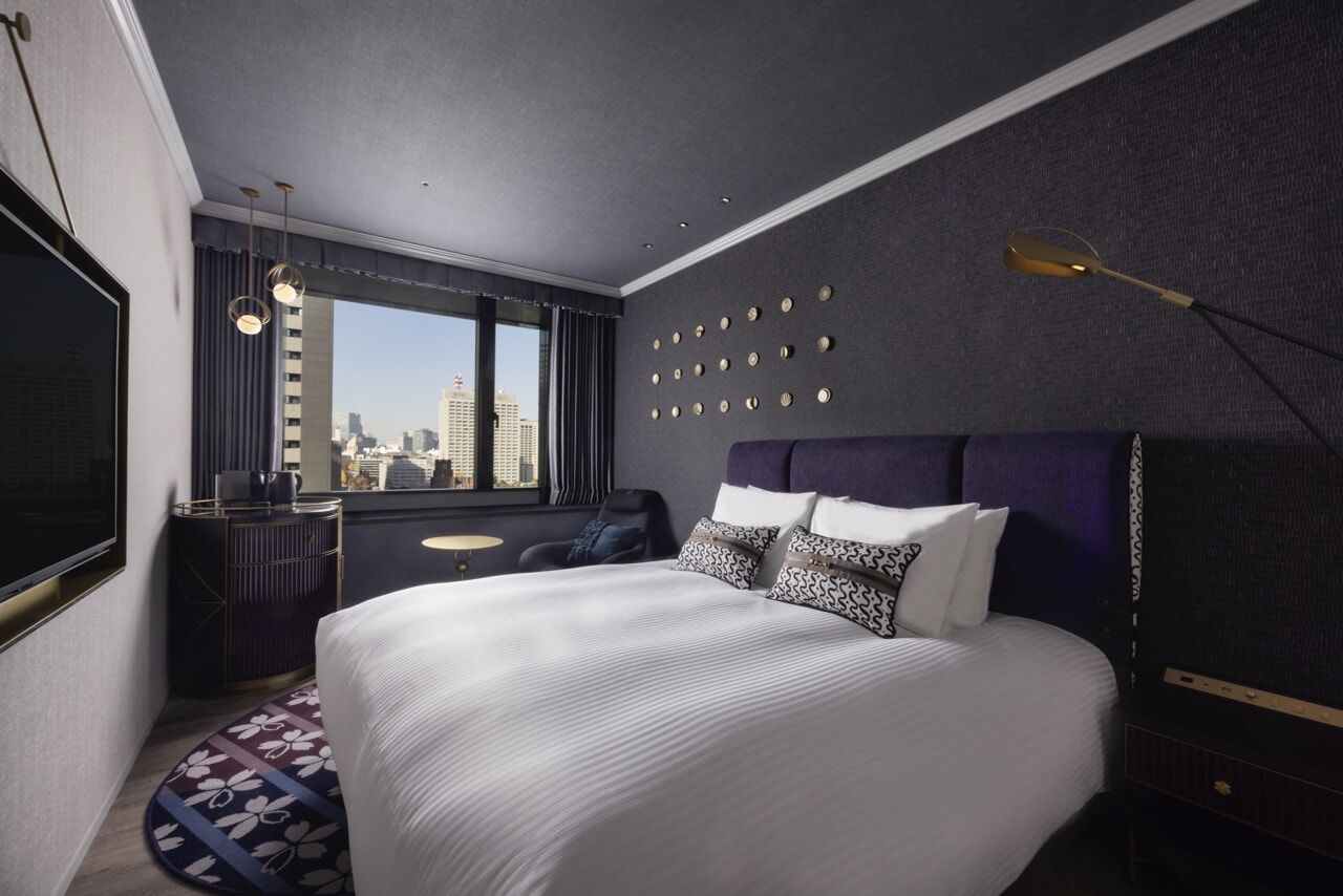 メルキュール東京日比谷内にはインターナショナルな雰囲気が漂い、気取らないスタッフの笑顔のもてなしに肩の力を抜いて旅の疲れを癒し、丁寧な対応に心休まる滞在が約束されています。ホテルがコンセプトに挙げたのが、「劇場の舞台美術 (Stage Art)」。内観がリノベーションされた館内は、エントランスに入ればアートに彩られた別世界が広がっています。「華やかな劇場や活気あるライブ会場がインスピレーション源となった」と掲げるように、インテリアの非日常感に、まるで舞台の幕が開いたときのような、また時にはモダンクラシック映画のワンシーンのような高揚感を感じ、体感してわかるデザインコンセプト「劇場の舞台美術 (=Stage Art)」に、なるほど……と納得です。