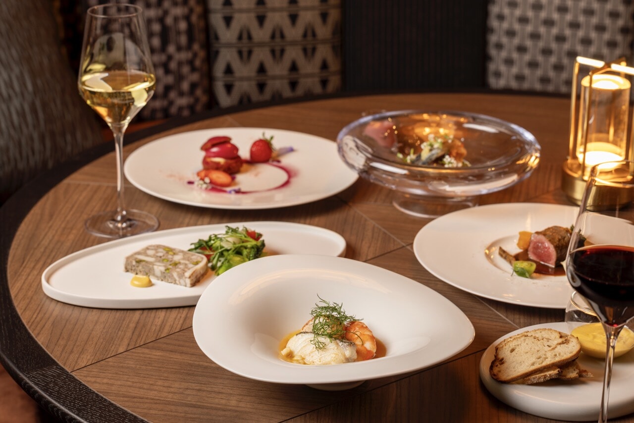 レストランは朝食、ランチ、ディナー営業の他、カフェ&バーとしても。料理はコース、アラカルト、そして「Le Goûter」(仏語で、味わう、おやつ等の意味)は日本ではアフタヌーンティーとして。「La Scène」ではケーキとドリンク(コーヒー、紅茶、日本茶など)のセットが1800円。