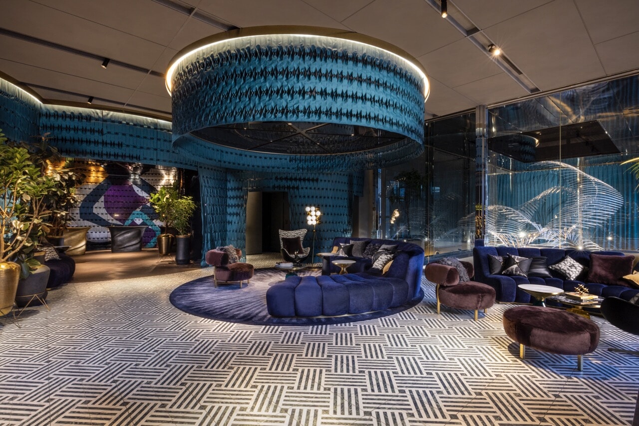 エントランスに入ると途端現れるのがアートなデザインのロビー。思わず足を止めて周囲を見回すほどメルキュールの世界。