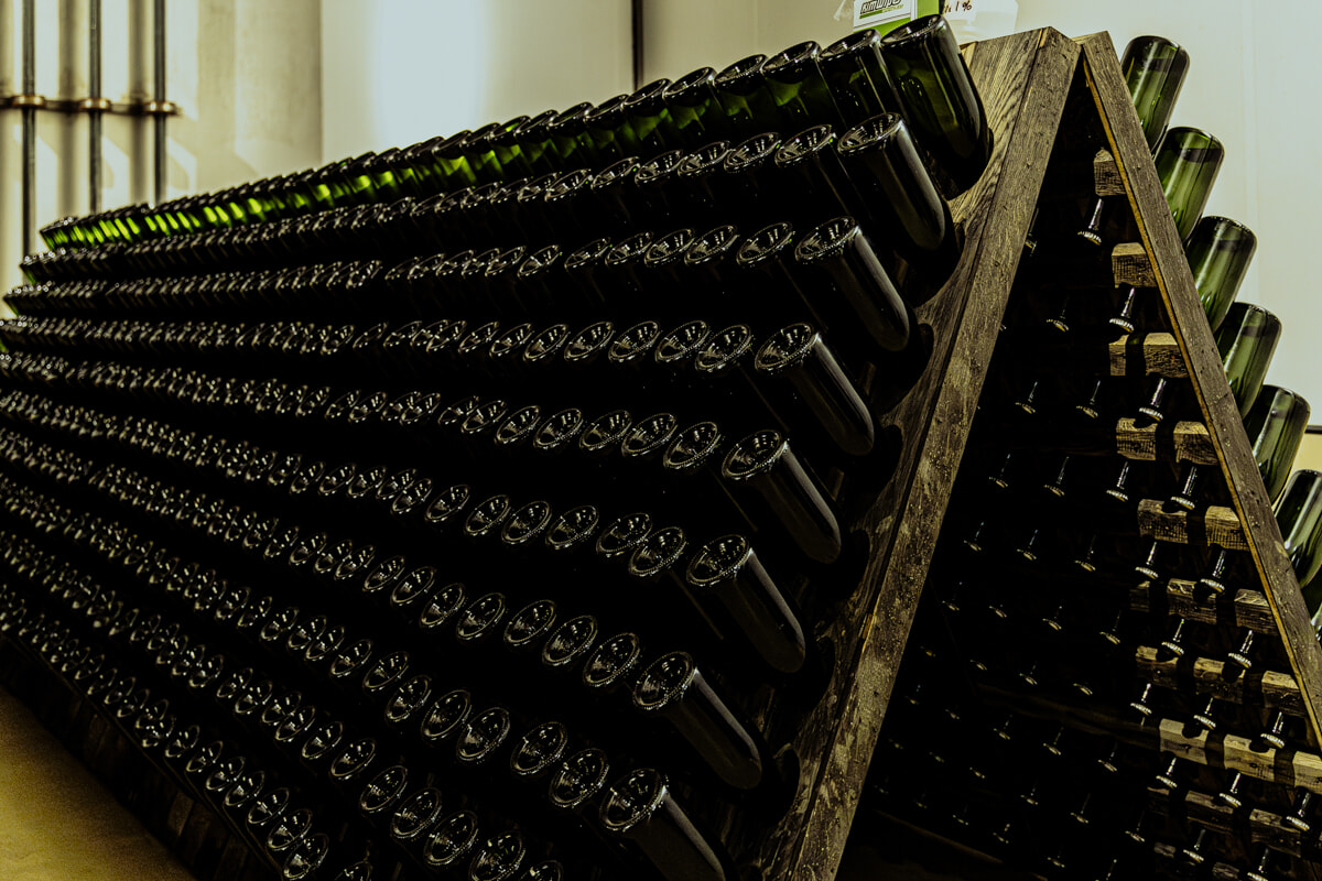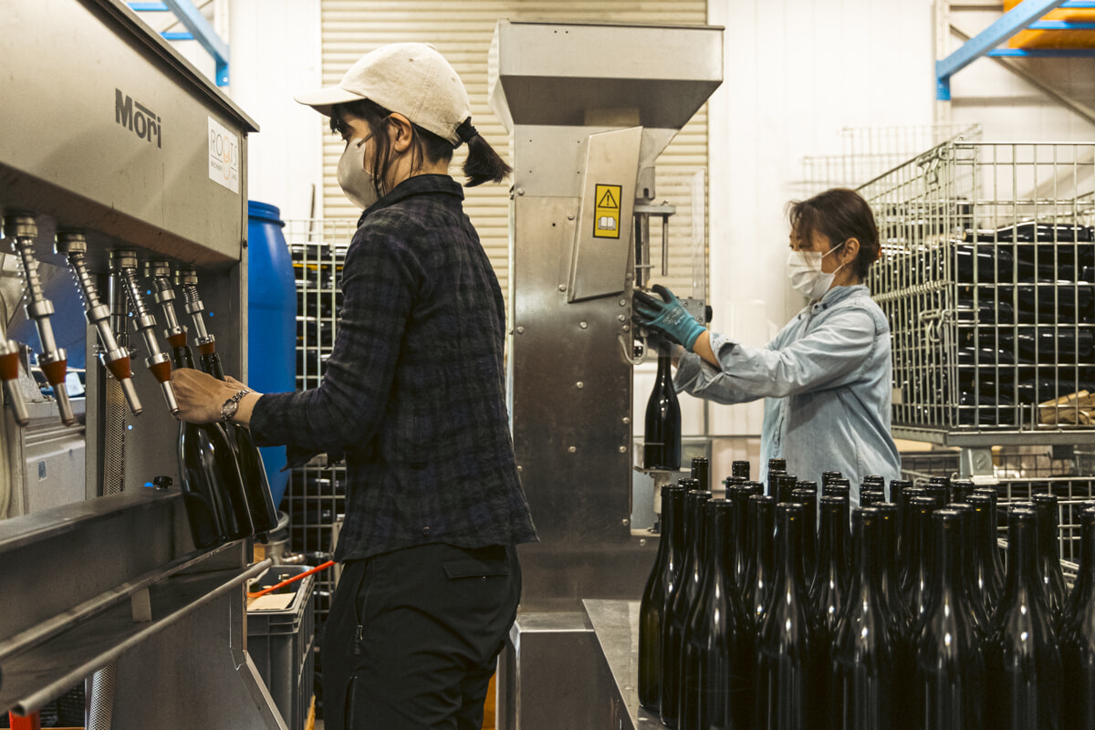 また、高価格帯となる瓶内二次発酵ワインは、瓶内の澱を集めるためボトルを回転させ、徐々に傾きをつけていくルミアージュという作業を人の手で行う。澱の上で熟成を重ねながら、繊細で滋味深い味わいを生み出している。