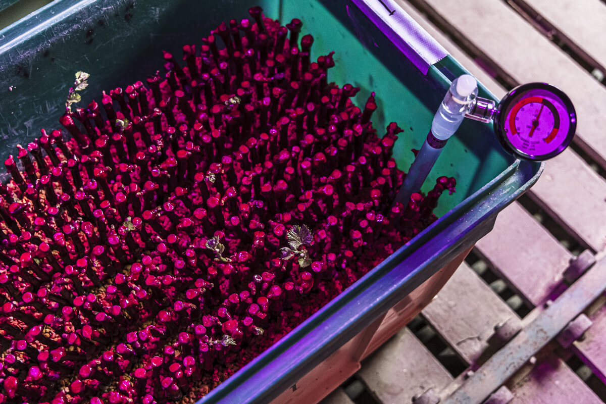 山中さんのもうひとつ大きなチャレンジが、「自根」によるブドウ栽培も行なっていることだ。19世紀末にフィロキセラ(ブドウネアブラムシ)というブドウの根を食い荒らす微小な虫が大量発生し、ヨーロッパ系のワインブドウ品種は壊滅に近いダメージを受けた。以降、世界のほとんどのワイン用ブドウはフィロキセラに抵抗力を持つアメリカ系品種に接木することで虫害を防ぐという打開策をとっている。