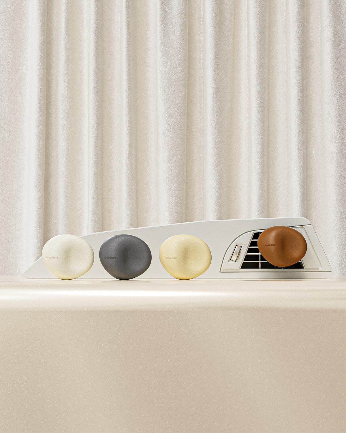 このカーディフューザーは、柔らかな革で包まれた流麗な小石のようなシェイプと、心地よい笑みを浮かべたときにできるえくぼを連想させる感覚的なパッケージデザインが特徴。香りは、タンバリンズのさまざまな製品で人気の「BIGALICO(ビガリコ)」と「CHAMO(カモ)」のふたつの香りに加えて、「LILY COCO(リリーココ)」と「BLUE FOREST(ブルーフォレスト)」の全4種の中から選べる。