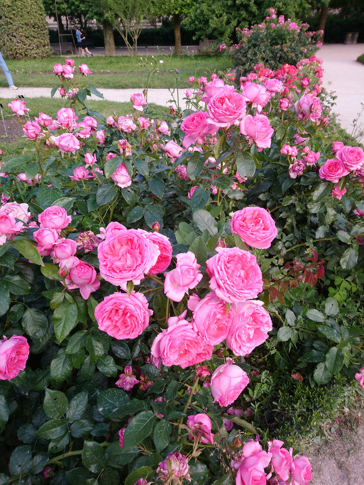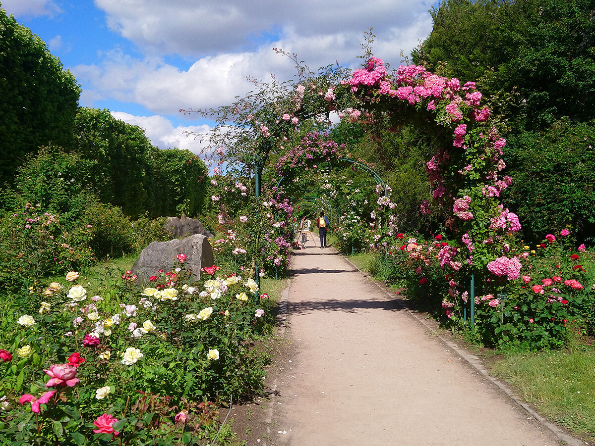 パリはバラの季節。5区にあるジャルダン・デ・プラントの中にあるバラ園には、花の香りを愉しむ人達が絶えません。