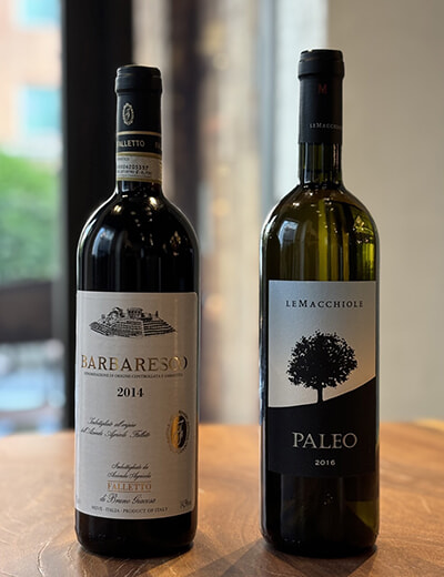 なかでも注目したいのは、「バローロのロマネ・コンティ」と称された天才醸造家、ブルーノ・ジャコーザが2014年に造った「ファレット・ディ・ブルーノ・ジャコーザ バルバレスコ 2014」。「ランゲ地区にあるそれぞれの畑の特性を熟知していた」と言われる、18年に惜しくも亡くなってしまったジャコーザが生前に手がけた、10年間の熟成を経たボトル……。”イタリアワインの女王”と呼ばれるバルバレスコがどんな味わいになっているのかを、ぜひ確かめてみてほしい。そして、規定に縛られず国際品種を使ったトスカーナ産の「スーパータスカン」と呼ばれるジャンルからは、名門レ・マッキオーレのシャルドネを主体とした「パレオ・ビアンコ」が登場! 生産本数3200本と言われる超貴重なボトルを堪能しよう。