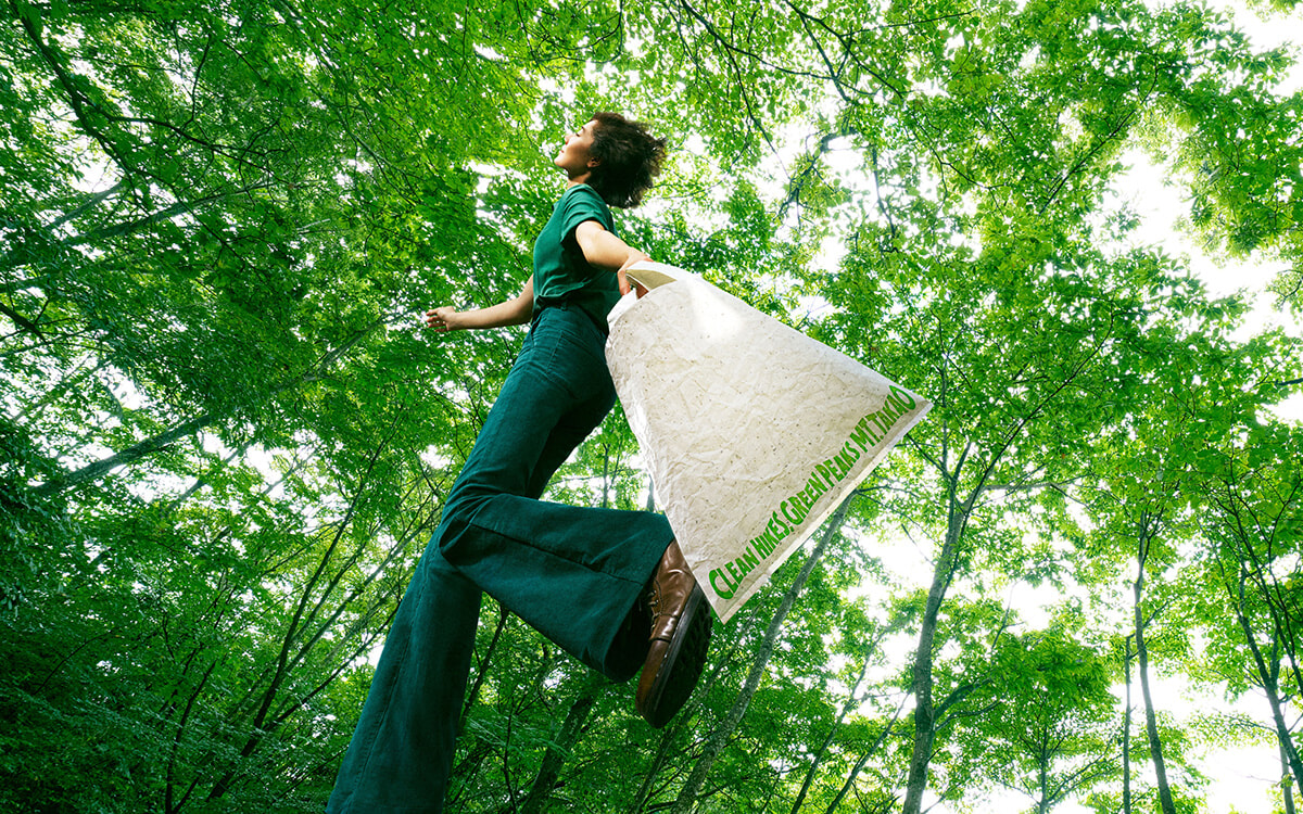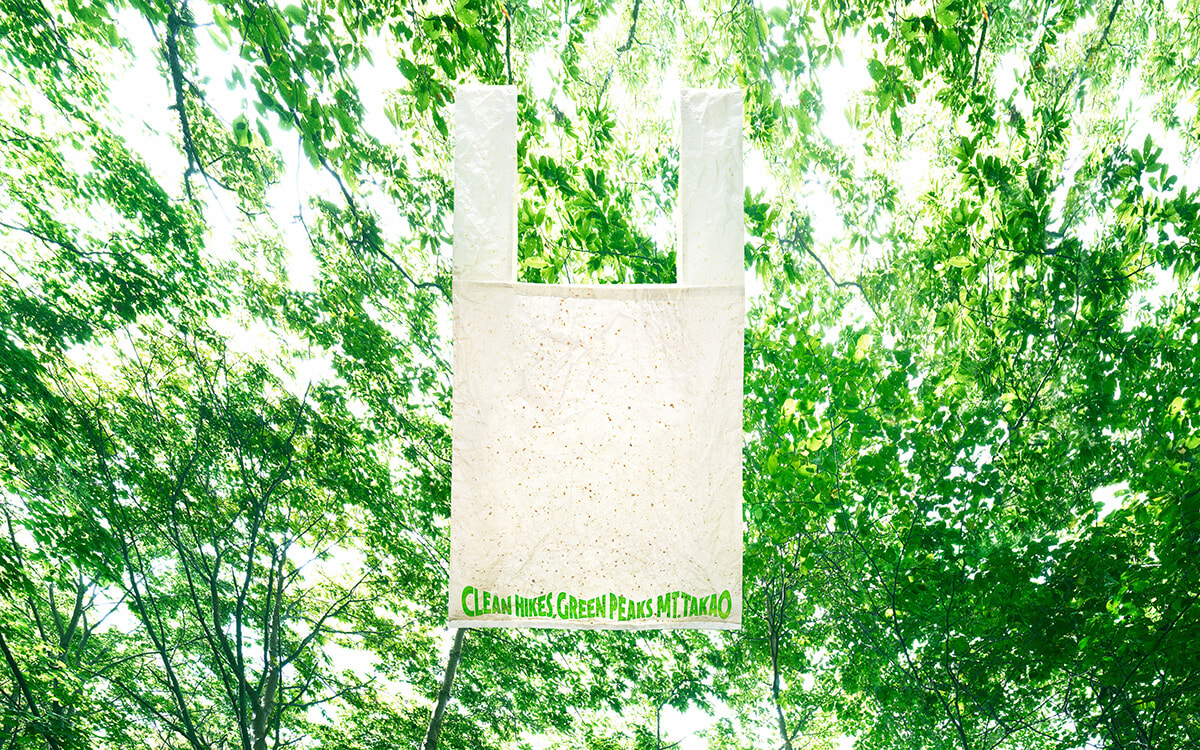 高尾山は2007年にミシュラングリーンガイドで三つ星を獲得した東京の観光名所。国内外からハイキングや登山を楽しむ人々で賑わうこの地域のために、トラッシュバッグを制作した。