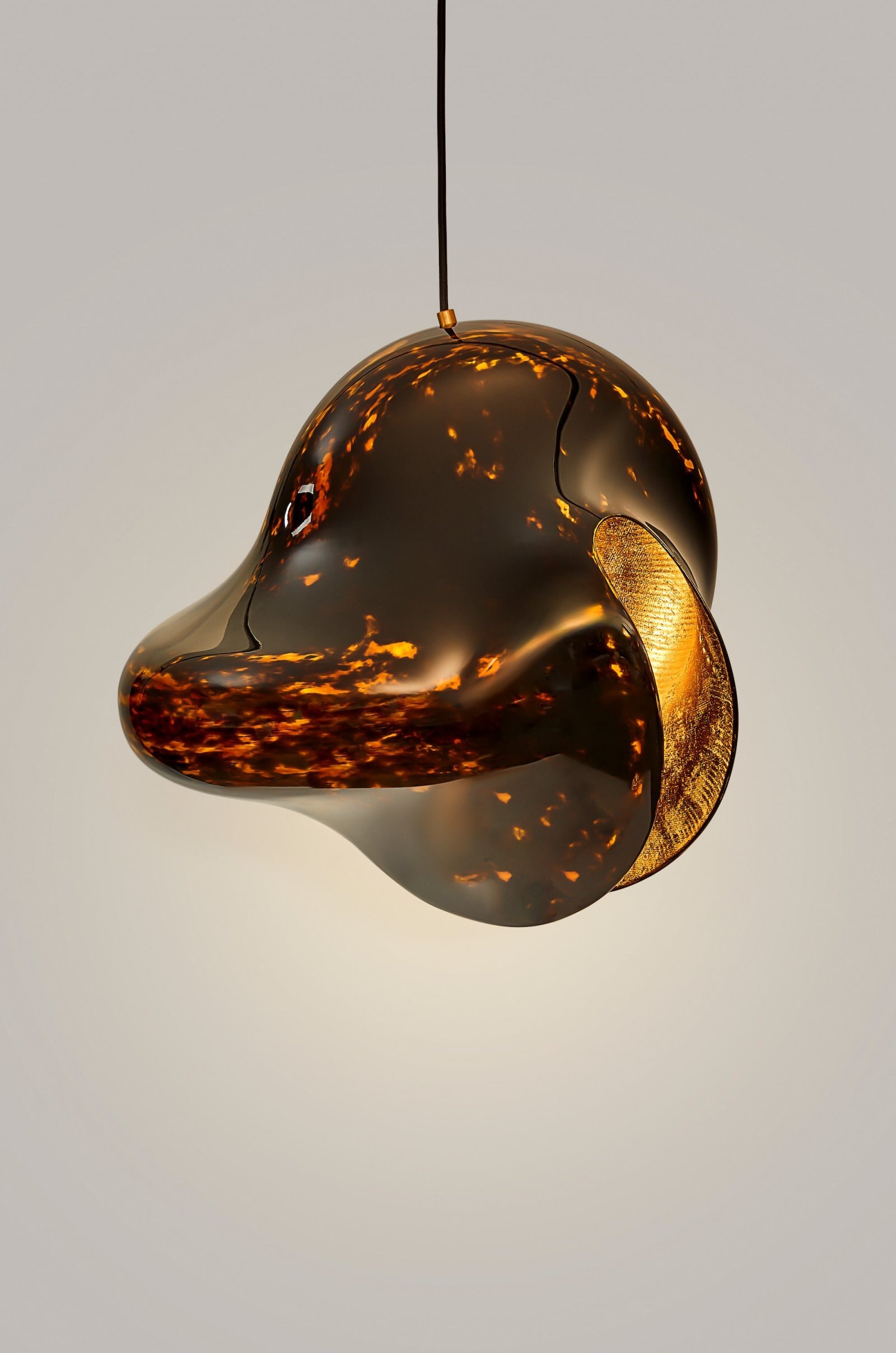 漆芸に対する見方を大きく変える作品で、2019年のロエベ財団 クラフトプライズ大賞を受賞した石塚源太は、漆を用いたランプを制作した。アルミニウムのダクト管に結び目をつくり、その表面に伝統的な乾湿技法を用いて黄色と黒色の漆の膜を塗り重ねていくことで完成したランプは、伝統的な技法を用いながらも伝統的な用途からは切り離し、漆を完全に素材として捉えた作品だ。照明という機能が求められたランプでは、「光をどのように作品に取り込んで一体化させるかに腐心した」と語った。