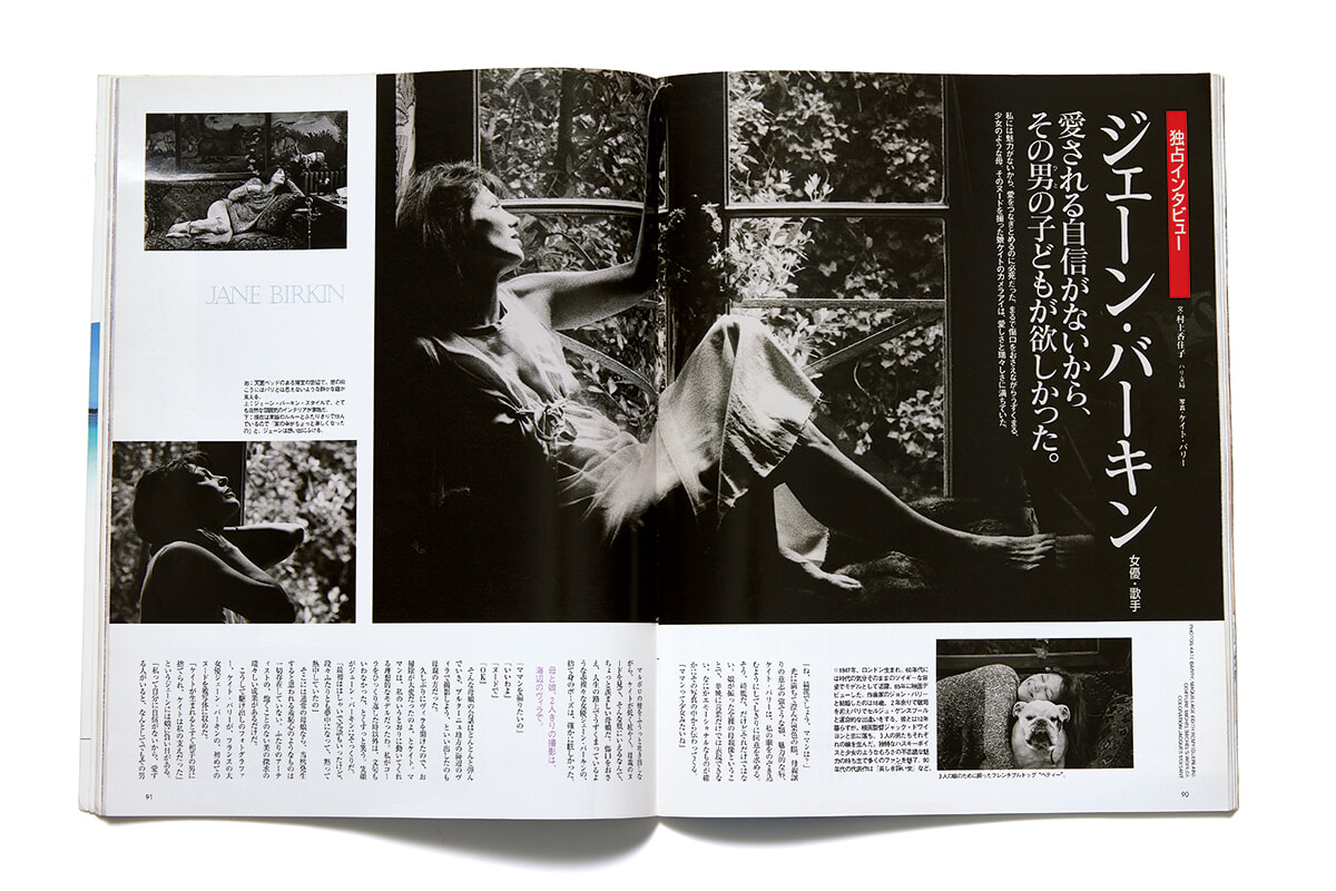 フォトグラファーとして本格デビューする前にフィガロジャポンで撮影していた母の写真を発見。当時の紙面を再掲載する。また、1995年当時フィガロジャポンパリ支局長で、このページを担当した村上香住子が、ジェーンケイトの思い出を綴る。