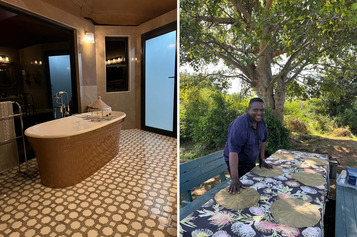大自然の中にあるホテルの立地は素晴らしく、夜はライオンの遠吠えが遠くから聞こえてきたり、敷地内の水飲み場に象の群れが水飲みをしにきたり、星空が本当に美しく、1分に1回くらいの頻度で流れ星を見ることができ、信じられないような光景でした。