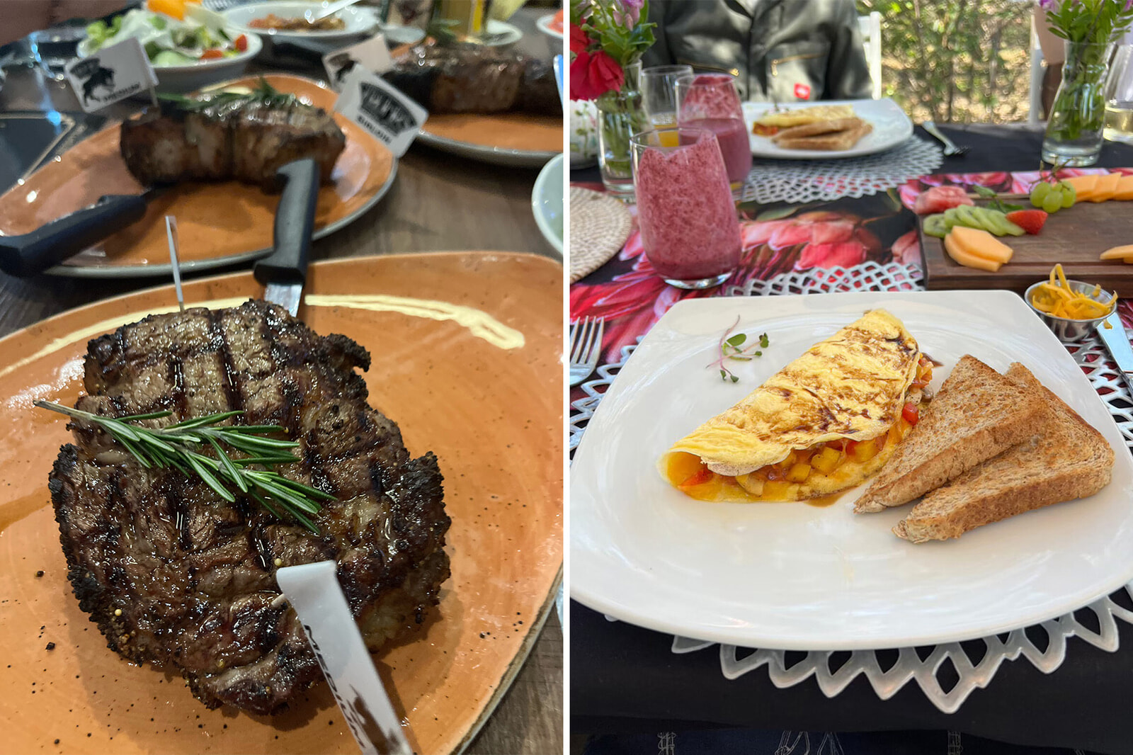 食事は主にホテルでとりましたが、毎食とてもおいしかったです。自然の中で食べるシチュエーションも最高でした。