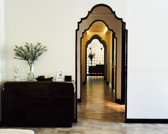 内装はシンプルながらオリエンタルなアーチ状の廊下が印象的。