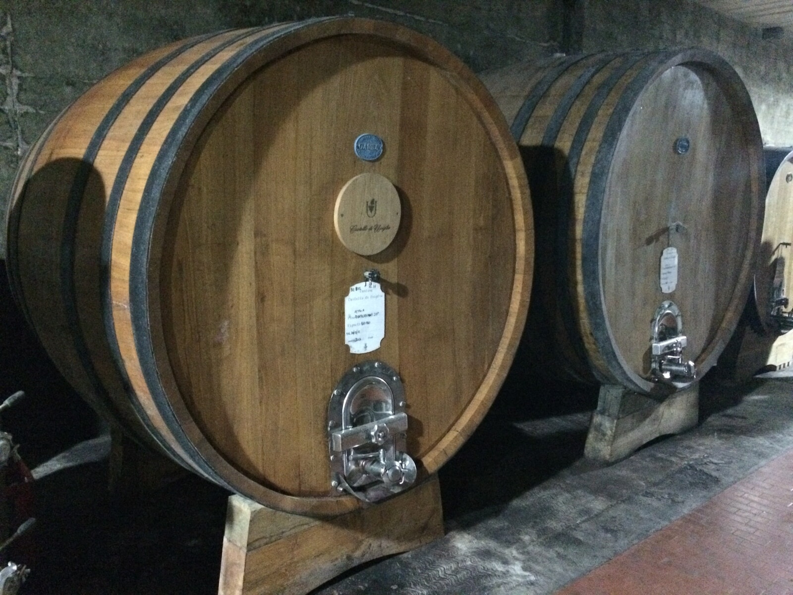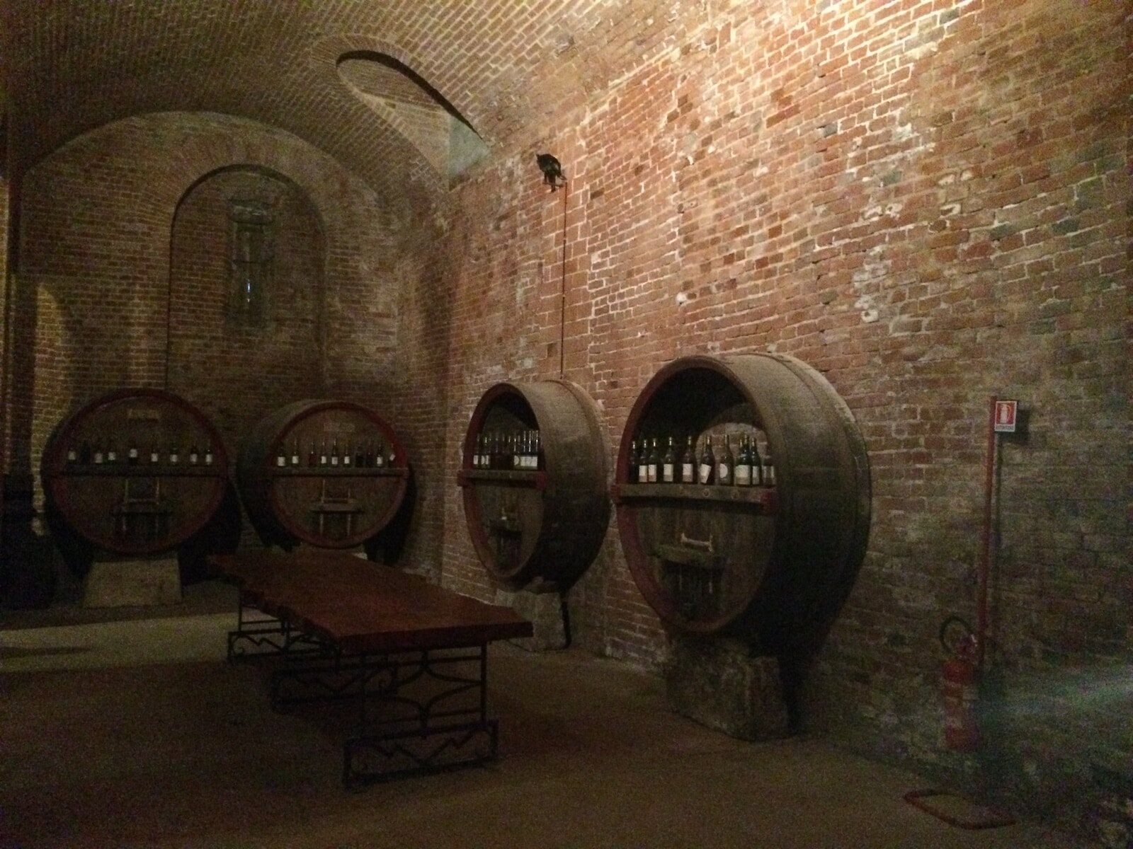 ピエモンテのワイナリーにて。伝統的な大きな木樽で、ワインを熟成している。