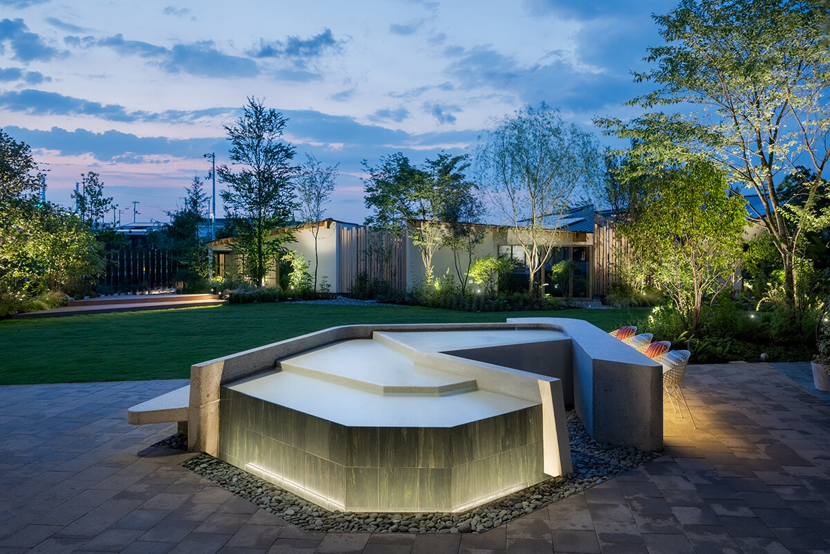 省エネと創エネでエネルギーを自給自足するいとまちホテルゼロ。西条市の風景にインスピレーションを求めた水場は、ダグアウトアーキテクツが手がけたもの。