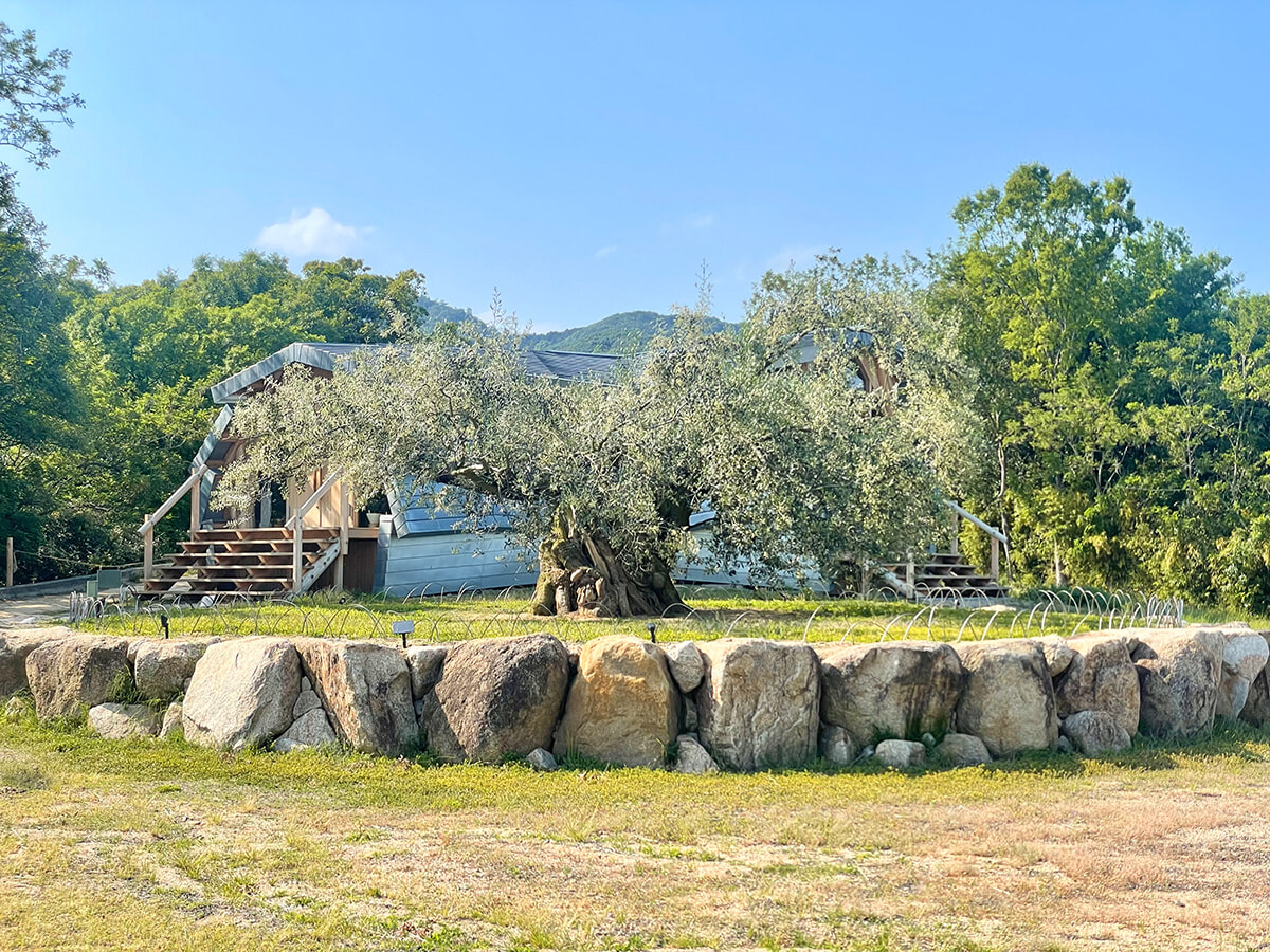 小豆島の自然やオリーブを通して五感を研ぎ澄まし、自然との調和を目指す千年オリーブテラス。プランツメディテーションなども提供。シンボルツリーは樹齢1000年のオリーヴ大樹。
