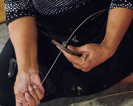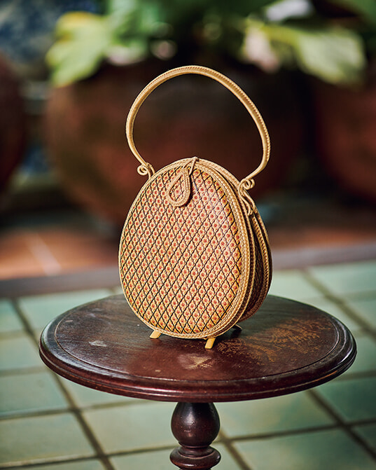 ひごの細さは、1mmに満たないほど。美しく繊細な編みに、タイの手工芸の奥深さを感じる。