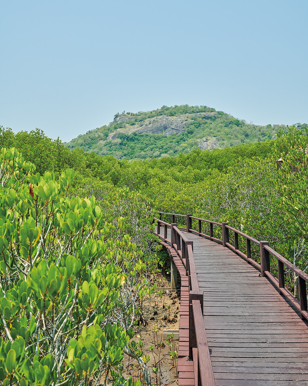 タイ随一のリゾート地、ホアヒンのさらに南下した先にひっそりと広がるのがプランブリだ。大きな観光名所はなく、静かなビーチ沿いに立つのはプチホテルと公園だけ。一面マングローブに覆われたプランブリ森林公園には遊歩道が設置され、犬の散歩ルートとして、ベンチはおばあさんたちの井戸端会議場所として、地元民がふらりと立ち寄る場所になっている。30分のトレッキングを終えたら町を探索。鳴き方が下手っぴな鶏の集団や哀愁漂う漁村……初めての場所なのに、懐かしい気持ちになるから不思議。