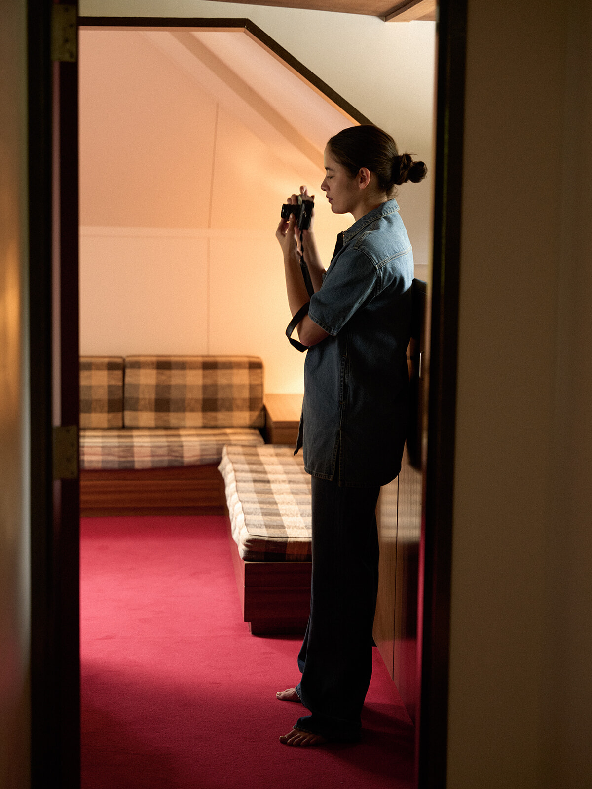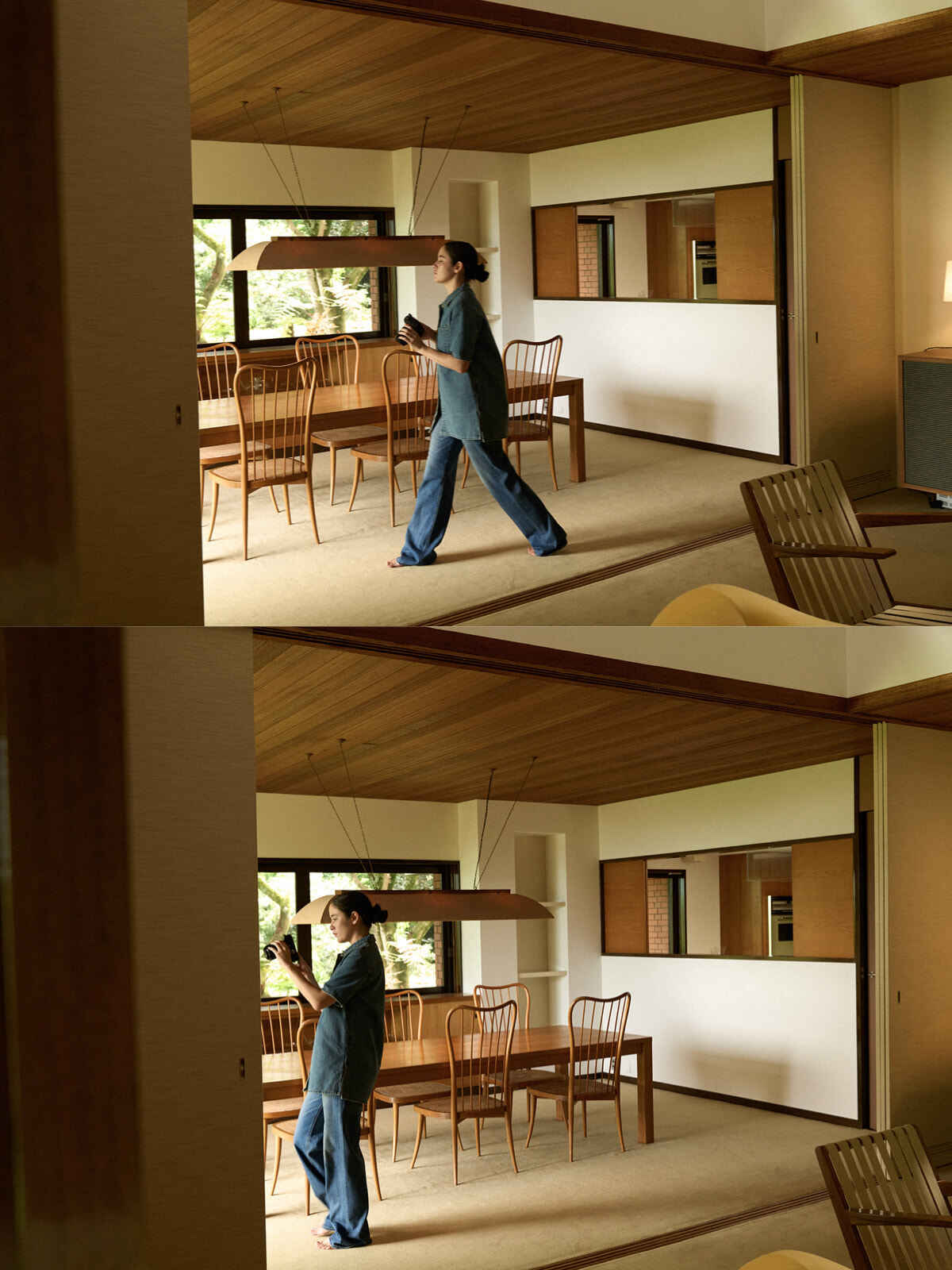 古き良き歴史をしっかりと継承しながら、トゥ エ モン トレゾアのデザイナー、佐原愛美は改修や家具のキュレーションによってモダンな風を吹き込んだ。その場所で、lukaが心を動かした光と影の世界。新旧が交わる建築の魅力を踊るように動く光と影に重ねて。