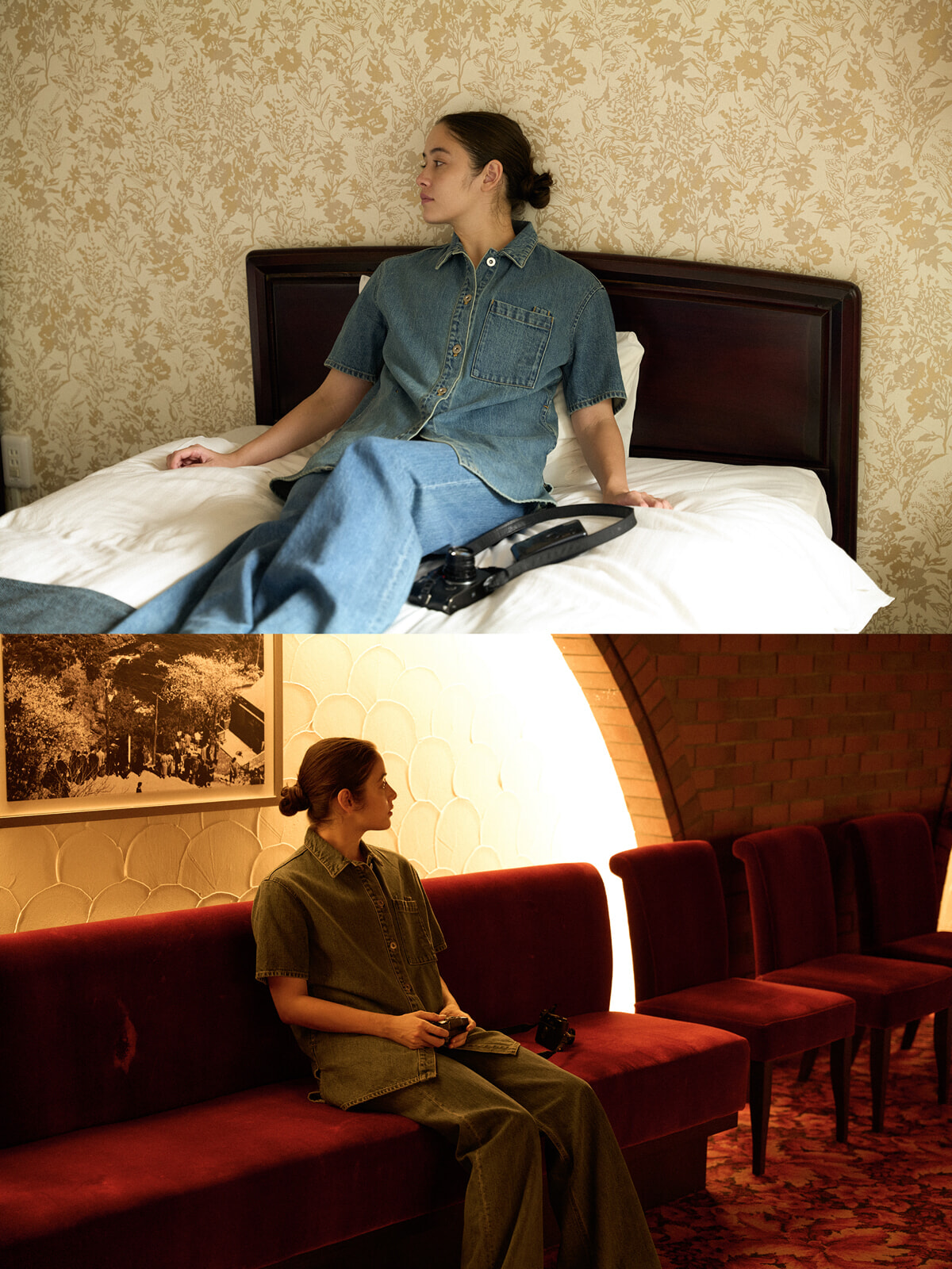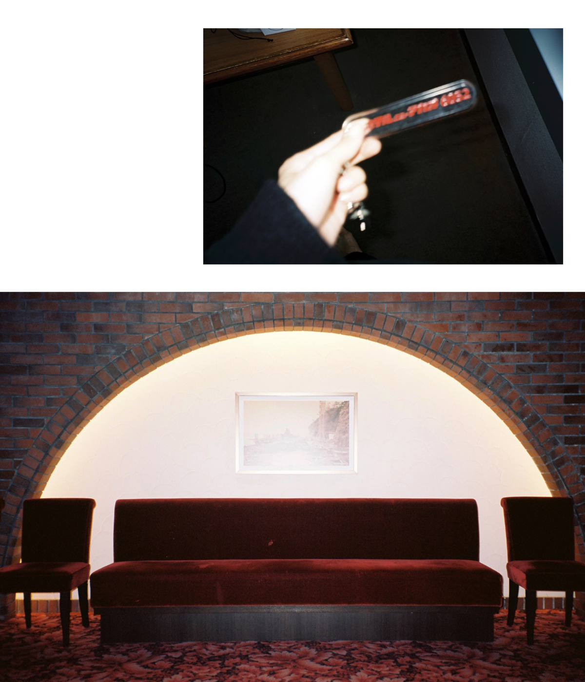 絵画のように青い空と海に映える真っ赤な看板やレトロなルームキー、温かなカルチャーが残るインテリアが、夏の雑踏の中でそっと寄り添ってくれる。lukaが切り取ったホテルニューアカオは、夏の午後に流る静かでスタルジックな時間。