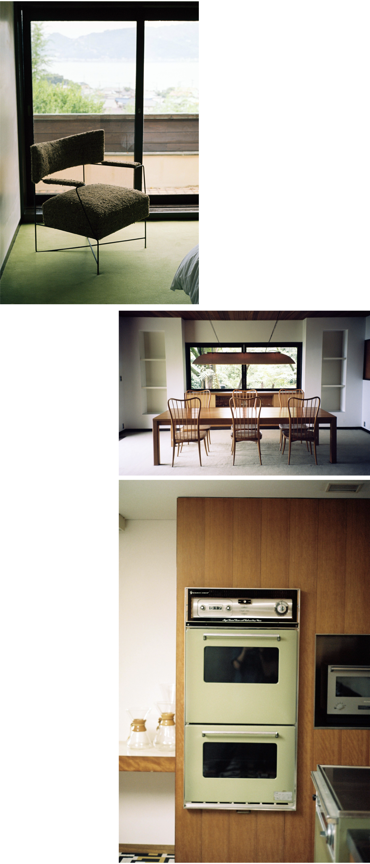 A. 空間を通して、日々の生活に美しさを見出す喜びを再認識できるところが吉村さんの建築の素晴らしさ。海景を切り取る大きな窓、光を取り込む三角の天窓、心踊らせる美しい色のカーペットなど、空間の隅々から、吉村さんの生活する人に対する温かな眼差しを感じ取ることができます。