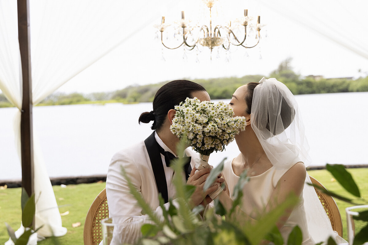 花:1年かけて準備をしようと決めたので、割とゆったり進めることができました。ステイホームの時、家であれこれ考えながら、インスタを通じて日本人のウエディングプランナーさんを見つけたんです。色々と調べていったら、夫の友人が同じプランナーさんの協力でハワイ挙式をしていたのがわかり、聞いたらすごくよかったと言うので、直接DMしたら喜んで引き受けてくださいました。