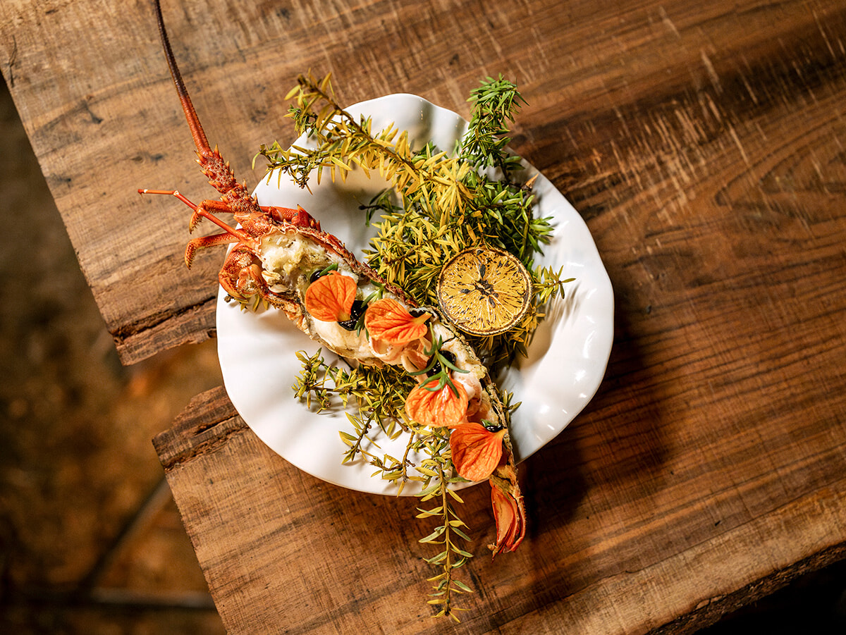 「星降る夜の晩餐会」でベン・ベイリーシェフが手がけた、クレイフィッシュ(イセエビ)を使ったひと皿。photography: Zico O’Neill Rutene