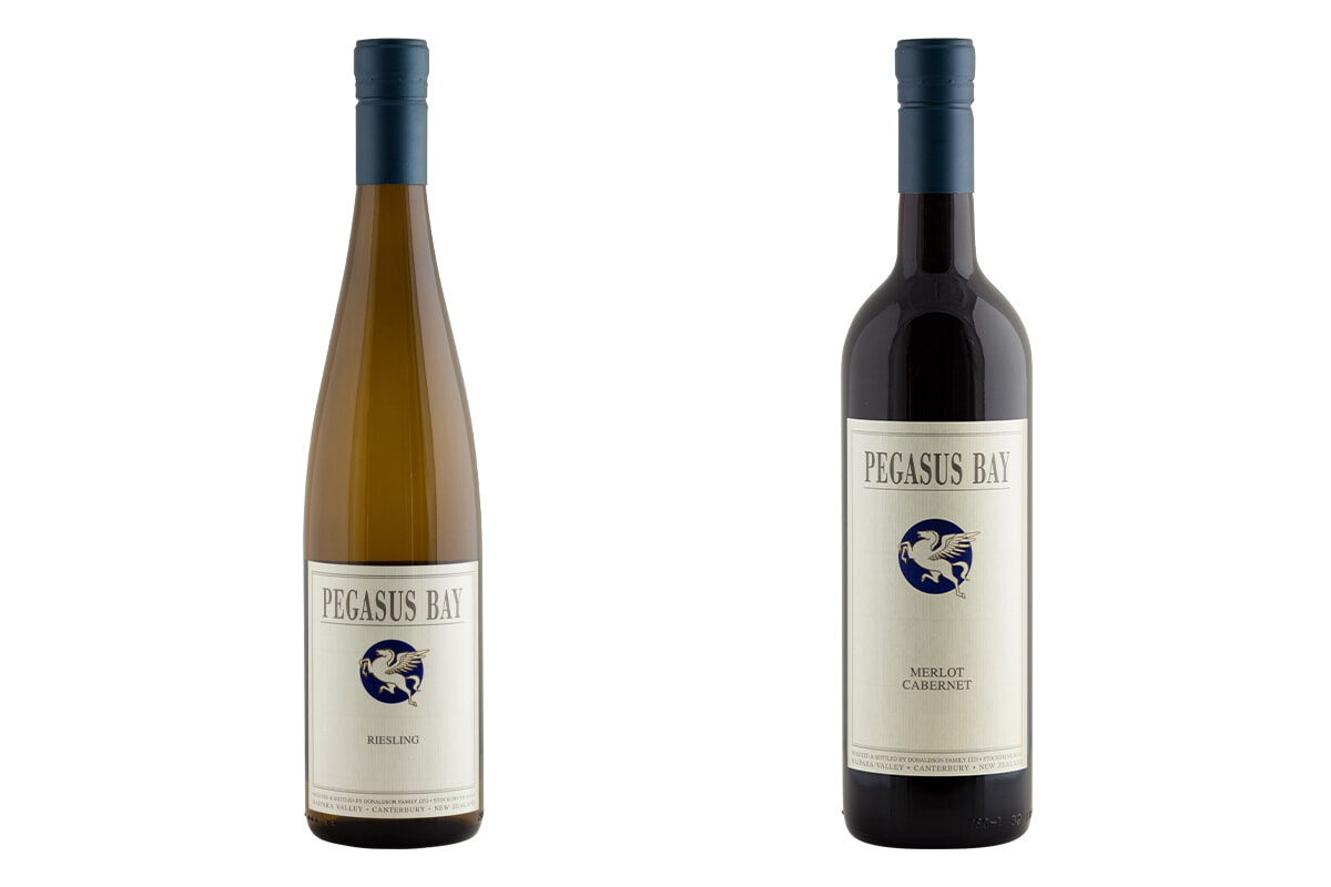 左からペガサス・ベイ・リースリング 2020 750ml/¥4,500、ペガサス・ベイ・メルロ・カベルネ2020 750ml/¥5,600