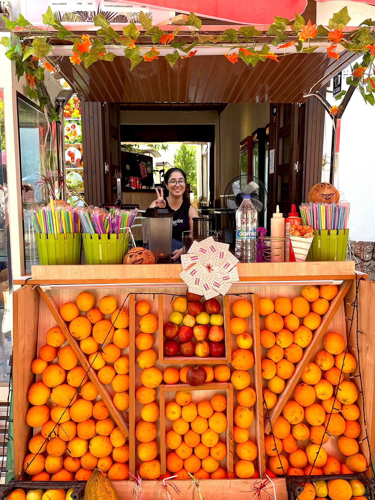 アンタルヤの街中で見かけたフルーツのジューススタンド。冬が近づくとザクロが並ぶそうだ。