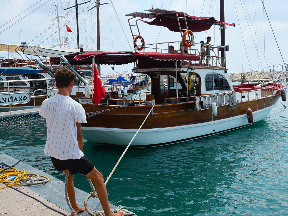 「夕暮れ時の地中海沿岸の港町は最高よ。週末の夜を友人たちと一緒に海辺のレストランで過ごすのが夏の過ごしかたなの」。隣の席にいたトルコ人女性がそう教えてくれた。今回はスケジュールの都合で夕暮れ時を過ごすことは叶わなかったが、クルーズ船を揺らす波音を聞きながら穏やかな午後の時間を過ごすことができた。