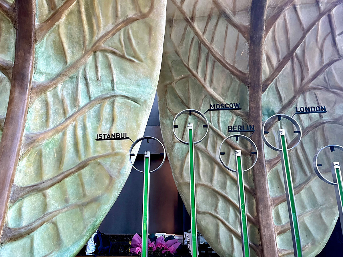 リゾート内ではハスの葉をモチーフにしたインテリアが多く見られた。
