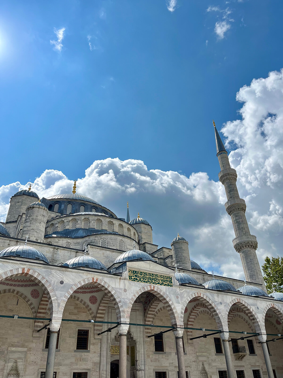 1616年に完成したスルタンアフメット・ジャーミィ。オスマン朝建築の傑作のひとつに挙げられるその姿は圧倒的な存在感を放つ。