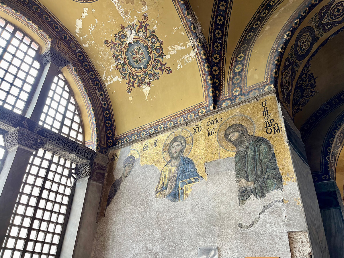 537年にギリシア正教の大聖堂として建てられた後に1453年にジャーミィ(イスラム礼拝堂)に変えられたアヤソフィア。ジャーミィにする際に一度漆喰で塗りつぶされたモザイク画が20世紀初頭に発見され、現在は博物館として一般公開されている。