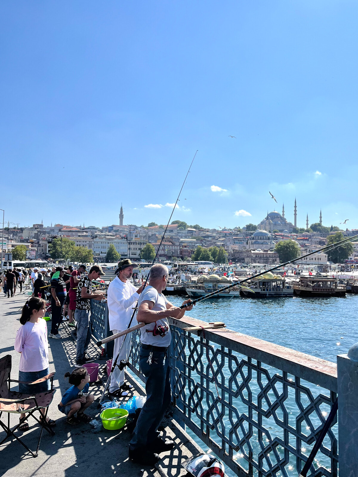 イスタンブール風物詩のひとつ(?)である、ガラタ橋の釣り師たち。釣果はまずまずのようだった。