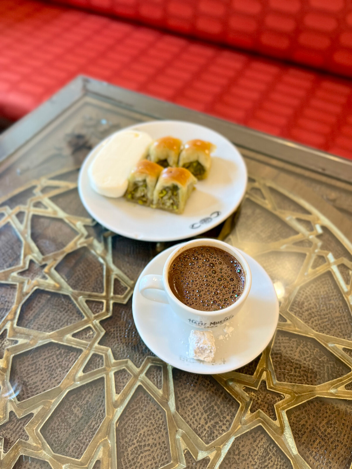 トルコ伝統菓子の代表といえばヴァクラヴァ。1864年創業の老舗『ハフィズ・ムスタファ1864』のピスタチオのヴァクラヴァはピスタチオがぎっしり。