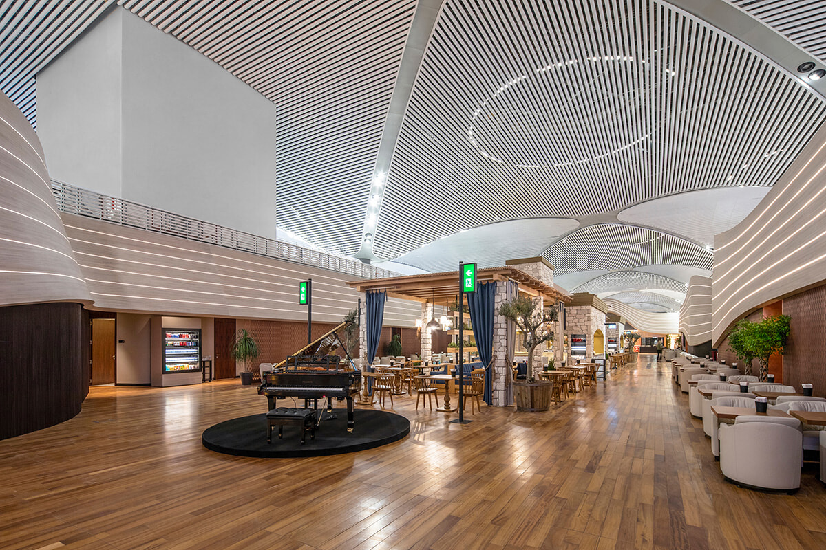 2018年に運用を開始したイスタンブール空港。日本からヨーロッパ、アフリカ、中近東、南米を広範囲に繋ぐ空港として世界有数の利用客数を誇るのだが、実はまだ拡張を続けているのだ。2030年の完全開港時には世界最大の空港になるのだという。そんなイスタンブール空港にある「Miles&Smiles ラウンジ」は、世界最大規模になろうとしているイスタンブール空港らしく約 5,600m²というスケール。ビジネスクラス利用客以外も、スターアライアンスのゴールドメンバ―であれば、エコノミークラスの搭乗でも利用ができるのも嬉しい。ラウンジというと、どちらかといえばクローズドな空間になることが多いが、「Miles&Smiles ラウンジ」はどこまでも開放的。そして、広さだけでない、充実のクオリティが詰まっているのだ。特筆すべきは、食の大国らしく洗練された料理の数々。ライブキッチンで提供される料理をはじめ、前菜からデザートまでビュッフェスタイルで提供される料理は、驚くほどにバリエーション豊かで胸が踊る。フライングシェフに始まり、帰路のラウンジまで、食体験の充実に驚くだろう。