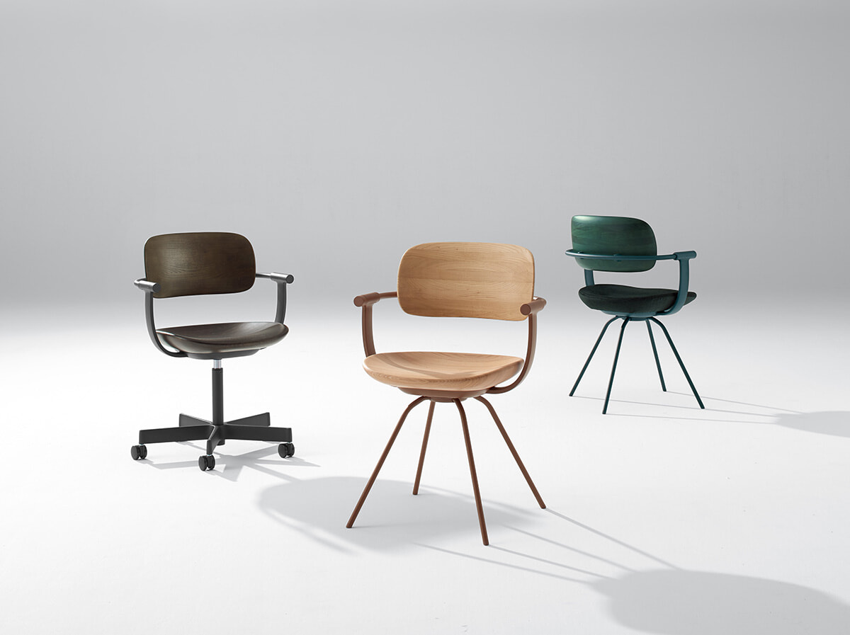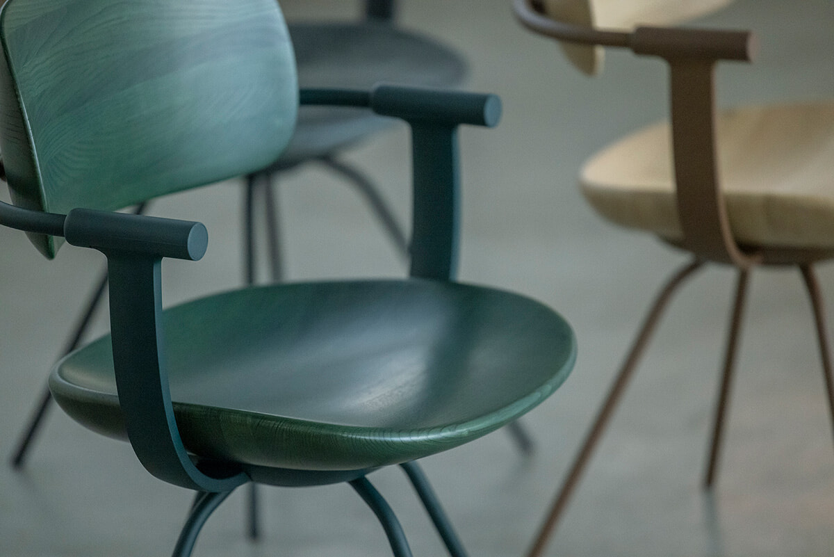 自由な働き方や人に寄り添う創造性は、カラー展開にも反映。座面および背もたれの木部は、クリア、ブラック、グリーンの3色展開。さらに従来より展開しているオリジナルの2種14色に加え、ノールテキスタイルズの2種14色の計28色のファブリックから自由に組み合わせることができるので、空間コンセプトや機能に応じて自由で拡張性のあるカスタマイズが可能なのも魅力。