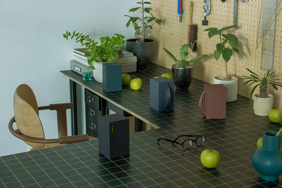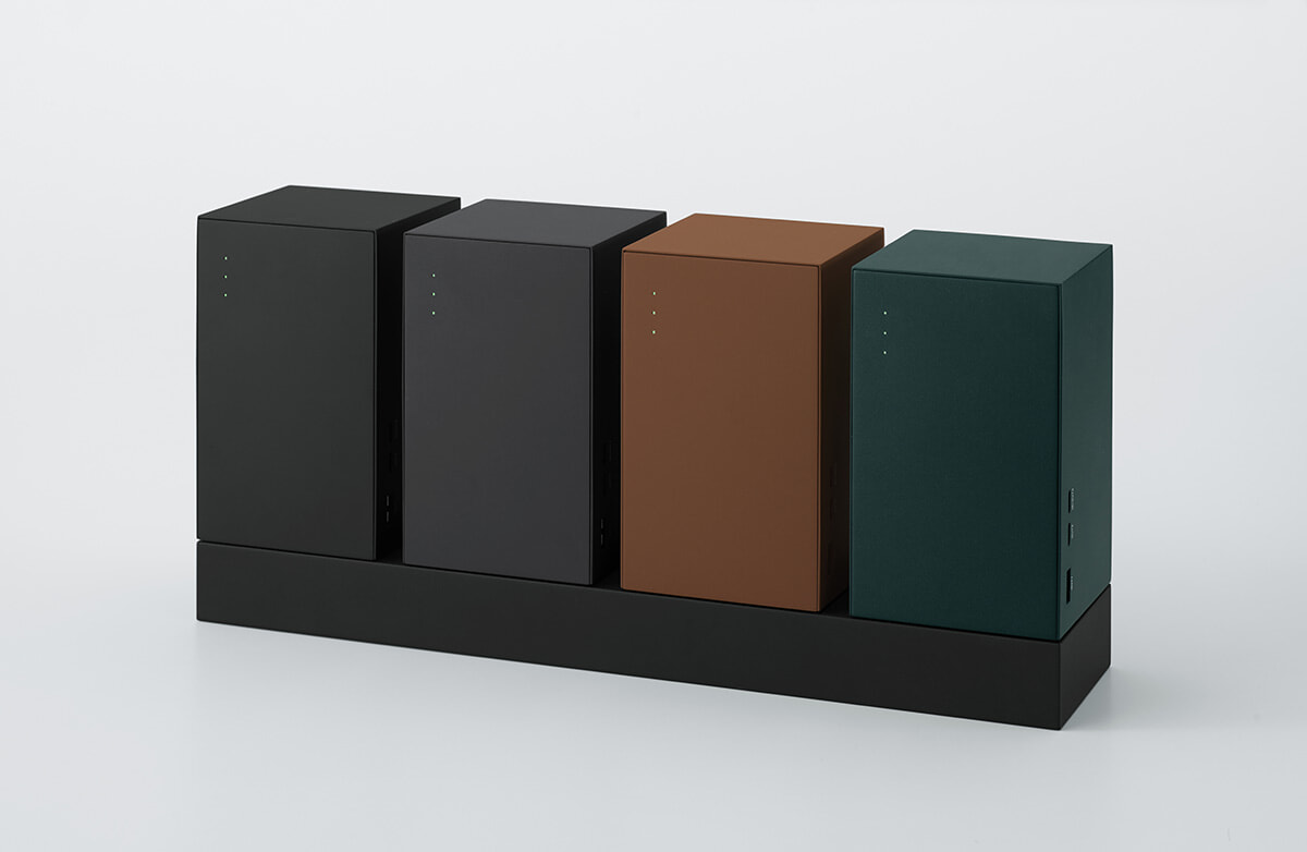 そしてオフィス空間におけるフリーアドレスや、外出先でのPC作業など、電源箇所に居場所を左右されることも多い昨今。その解として生まれた「hako(ハコ)」は、使う時も、運ぶ時も、充電する時も空間に調和する美しい佇まいのポータブルバッテリー。