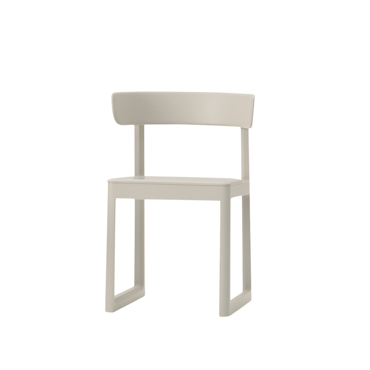 ストックホルムで活動するニック・ロスが1990年代ミニマリズムから着想した椅子。太めのフレームに上部が三角形にカットされた背もたれを合わせることで、親しみやすさとシャープさを共存させた。