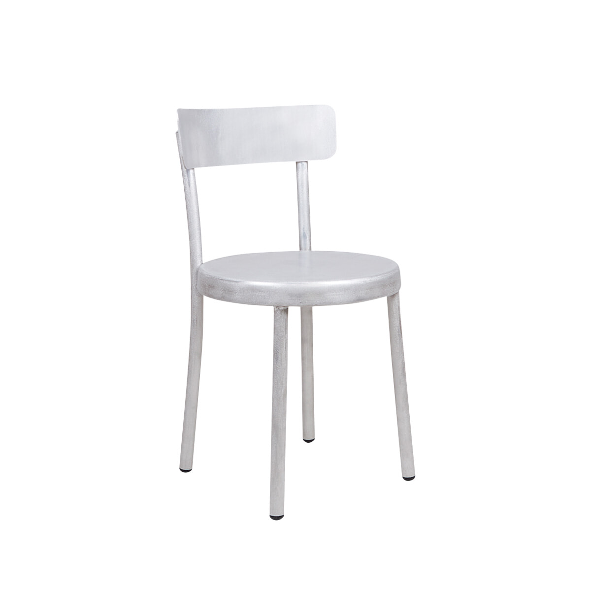 椅子のシンプルなアウトラインをアルミニウムで表現。軽量で持ち運びやすく、耐候性もあるので屋外でも使える。