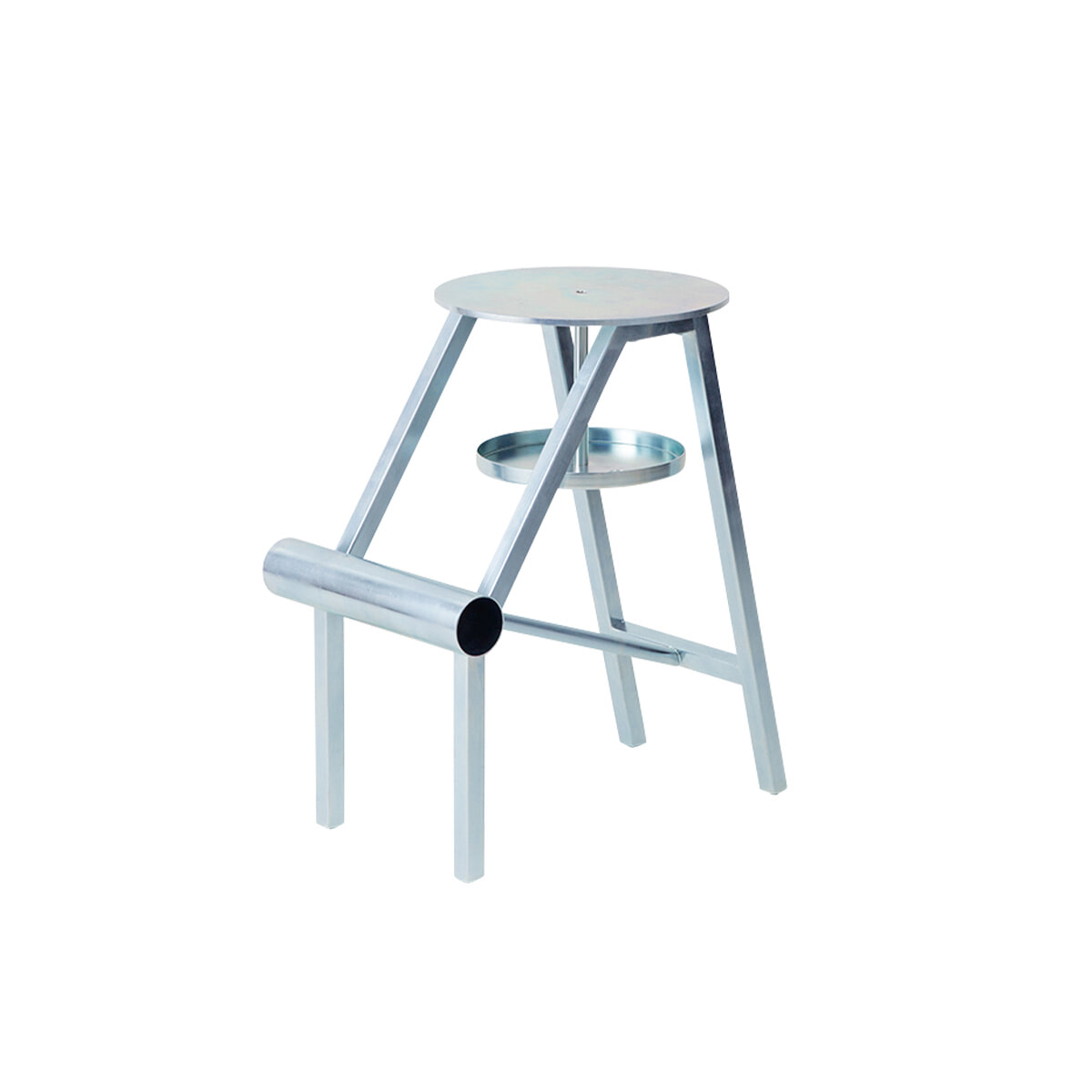 靴を履く、靴紐を結ぶ、靴を磨くといった”靴”にまつわる一連の行為を、ひとつの形に凝縮した靴専用スツール。建築も手がける二俣公一がデザイン。内と外の連結部でもある玄関先というヘビーデューティな使用環境を鑑み、建築工具にも使われるメッキを施した。