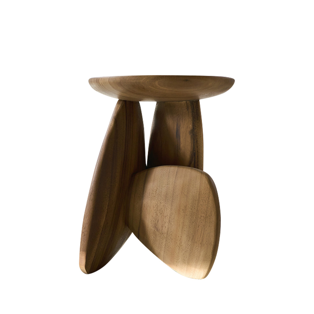 タイ北部のチェンマイ一帯に残る豊かな森の恵みと木工の技を、バンコク拠点のアトリエ・ツー・プラスが現代的に表現。有機形状の3つのパーツを巧みに組み合わせた脚のデザインが秀逸。