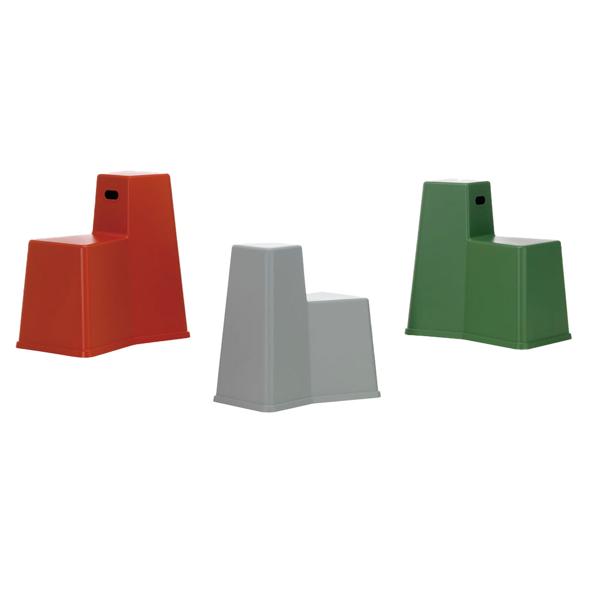 座る向きに応じて高い方を背もたれやテーブル代わりに使うこともできる多機能スツール。コンスタンティン・グルチッチによるデザイン。