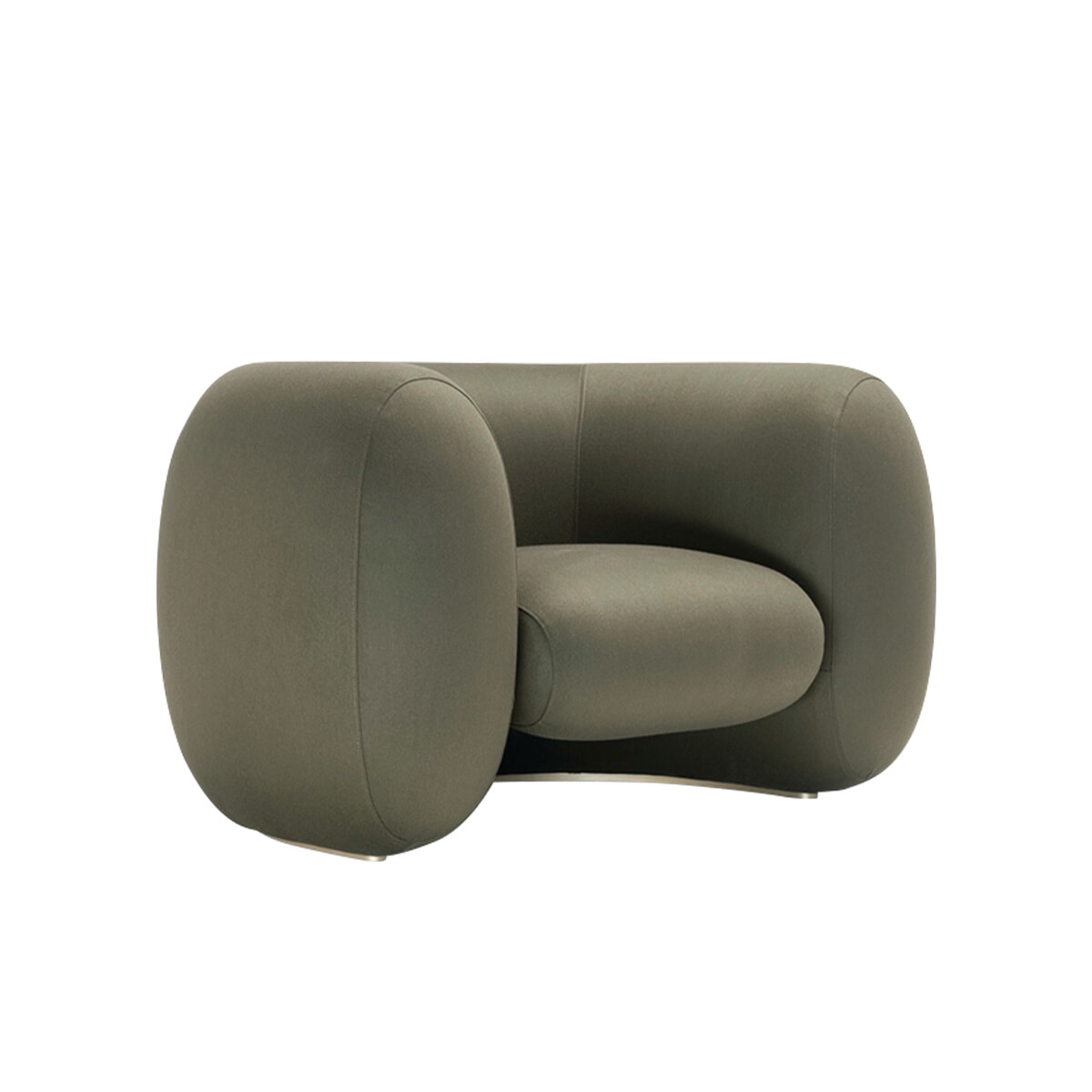 浮き輪に乗ってプカプカと水面を漂っているような浮遊感をひとり掛けソファに落とし込んだ。ゆったりとした丸みが、柔らかく身体を包み込んでくれる。