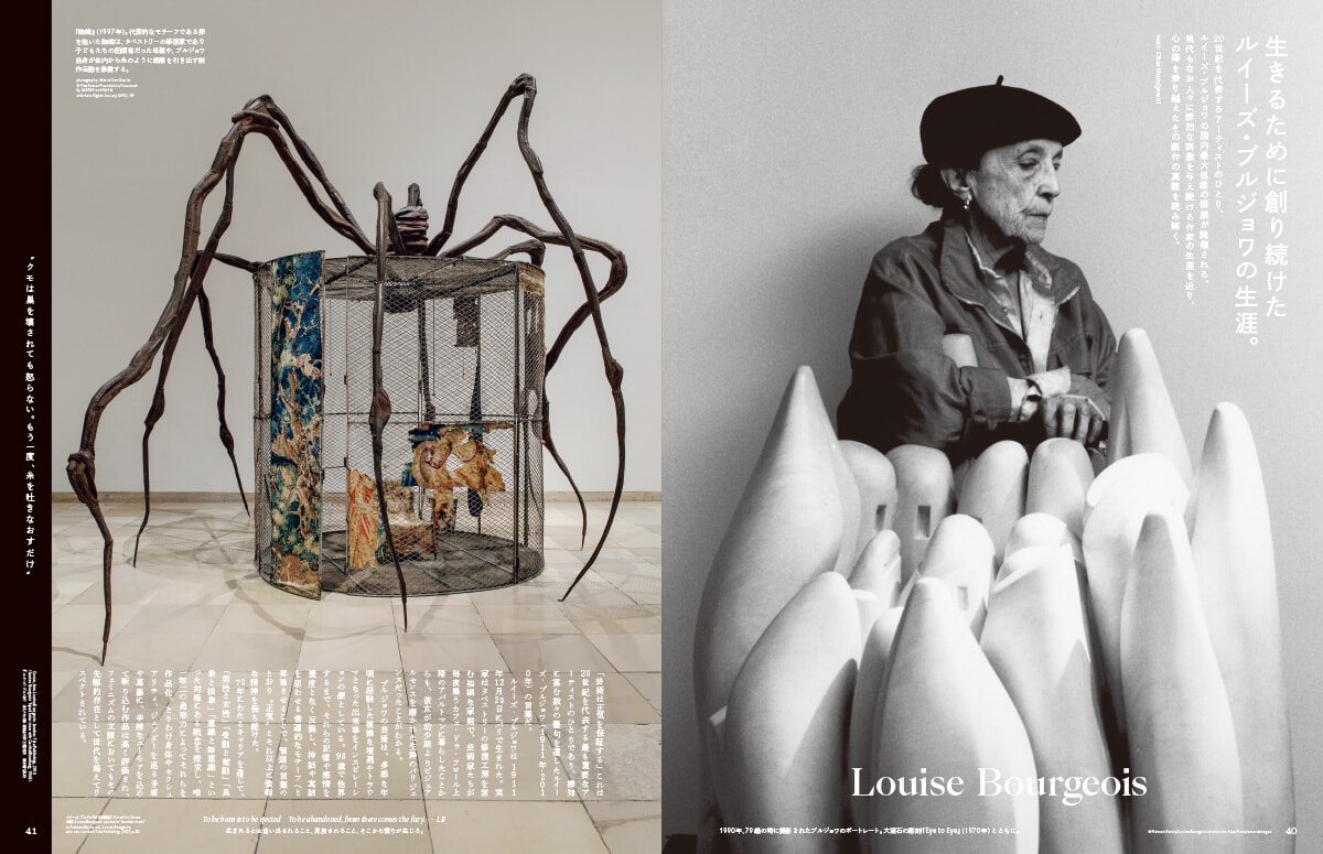 ルイーズ・ブルジョワや塩田千春さんはもちろんのこと、ヨーロッパで大活躍しているエヴァ・ジョスパン、今年のKYOTOGRAPHIEで震えるほど素晴らしい展示を見せてくれた写真家ヴィヴィアン・サッセン、若い世代の憧れの存在でもあるオリヴィア・ビー、そしてアルル国際写真フェスティバルで受賞した石内都さんなど、女性の芸術家の力に魅せられる機会が続き、この特集へと着地しました。