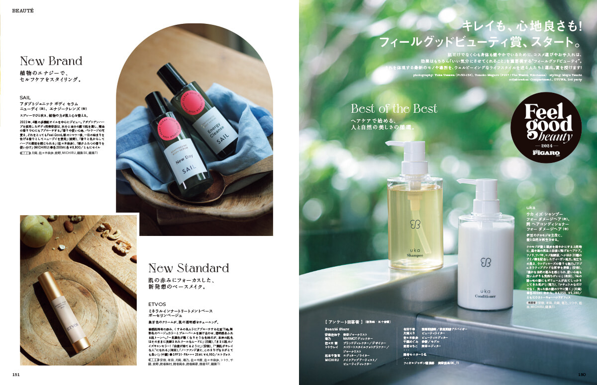美容テーマはフィガロジャポンの大事にするテーマ「Feel Good Beauty」。心地よくキレイを手に入れたい人にオススメのナチュラル&ヘルシーを叶えるアイテムがたくさん紹介されています。