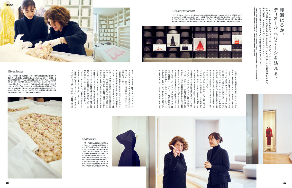 表紙は綾瀬はるかさん。マルク・ボアン時代に創られたMISS DIORロゴを現代によみがえらせた秋冬の新作を、パリで纏っていただきました。普段はやわらかで愛らしい雰囲気の綾瀬さんですが、こちらのモード撮影では強さがあるのに力みがない、さりげない色香が漂っています。誌面のモノクロの写真もぜひ見てください。