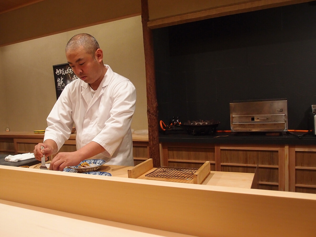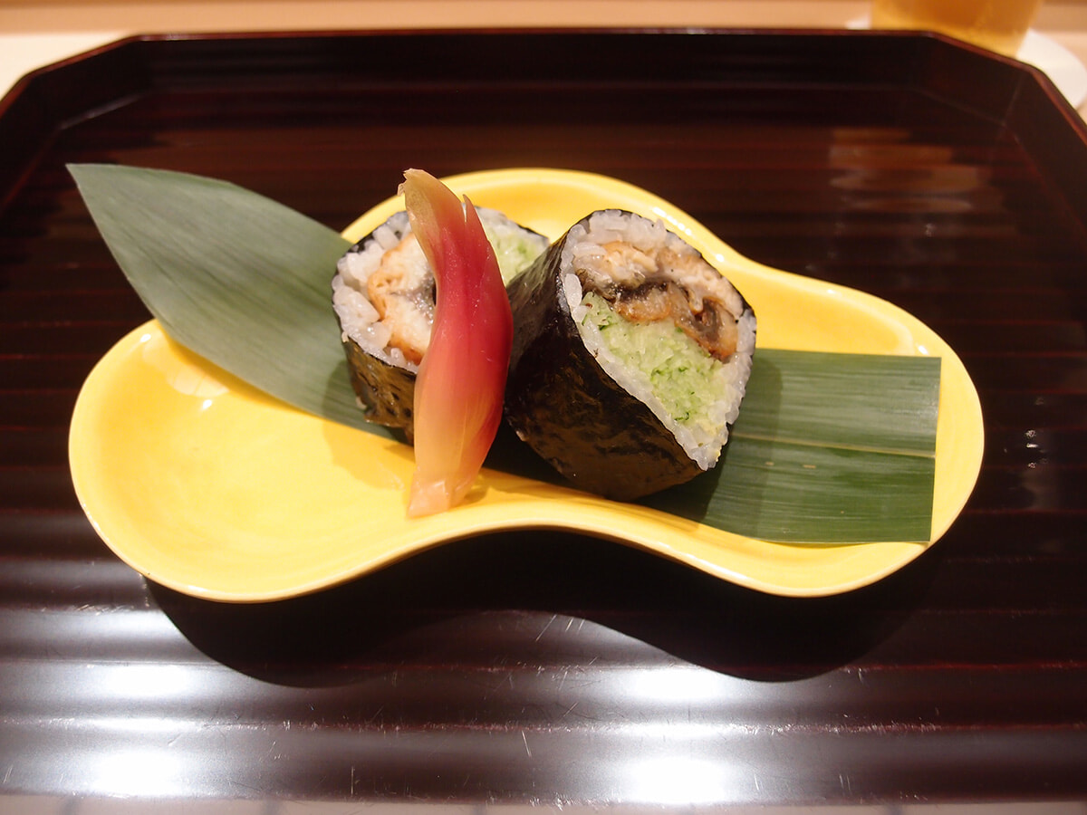 お凌ぎとしてちょっと意外だったのが「ウナキュウ」。カウンターでかぶりつきだったので巻くシーンをじっと眺めていましたが、ミリ単位(1ミリ以下かも?!)まで細切りしたキュウリがたっぷり。甘じょっぱいウナギとよく合い、爽やかな印象を与えてくれます。