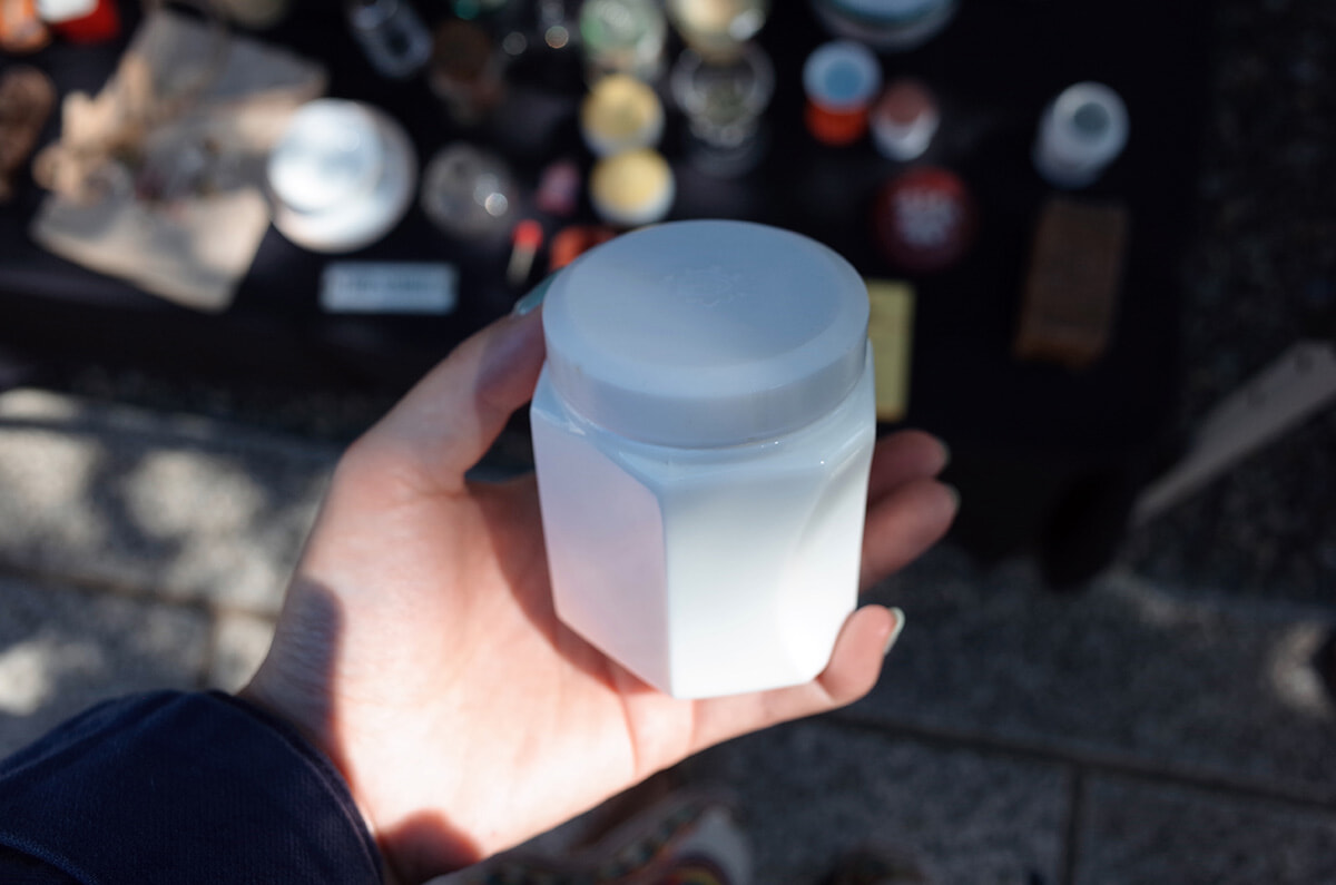 購入後、この瓶について調べてみると、LAで1909年に化粧品・演劇用品店として創業したマックス・ファクター社のものと判明。ちなみにメイクアップという言葉は、創設者の台詞「Make Up(もっと美しい表情を)」が語源で、のちに化粧をするという意味で使われるようになったと言います。